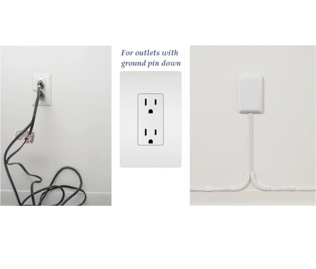 Declutter your space with this Sleek Socket outlet concealer and cord management kit! It's designed to hide bulky, unsafe, and ugly plugs and cords, blending seamlessly with your decor. Ideal for kitchen countertops and other areas where you want a cleaner look. This kit includes adhesive cord management clips and can power devices up to 3 ft from the left and right side of the same wall outlet