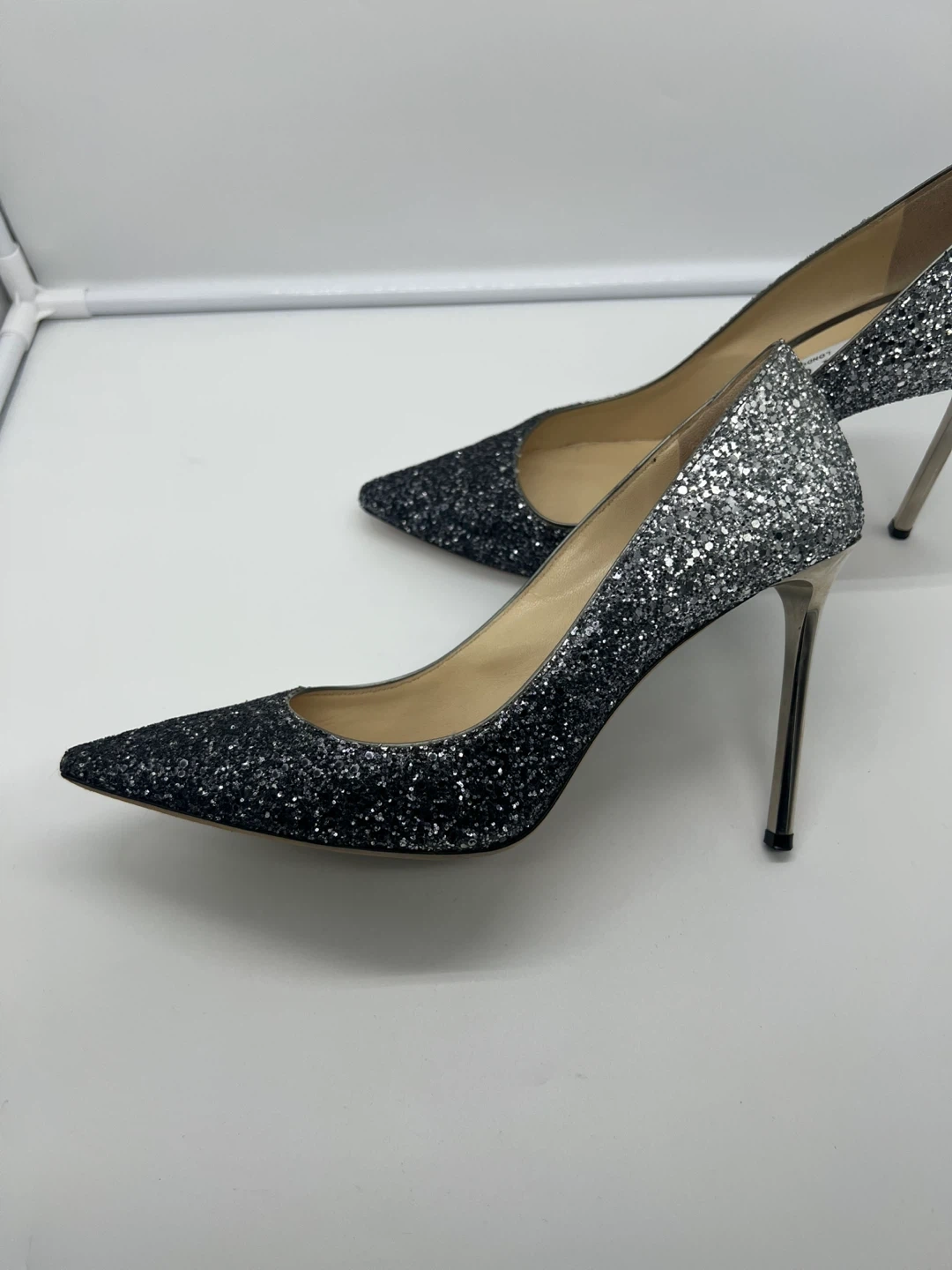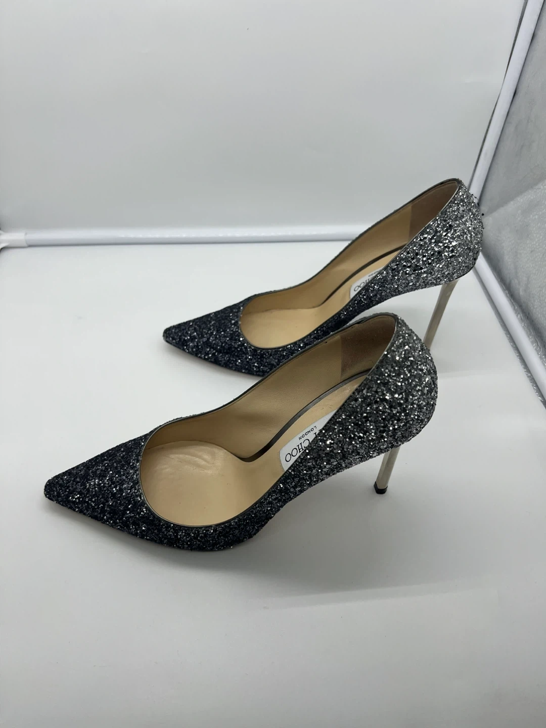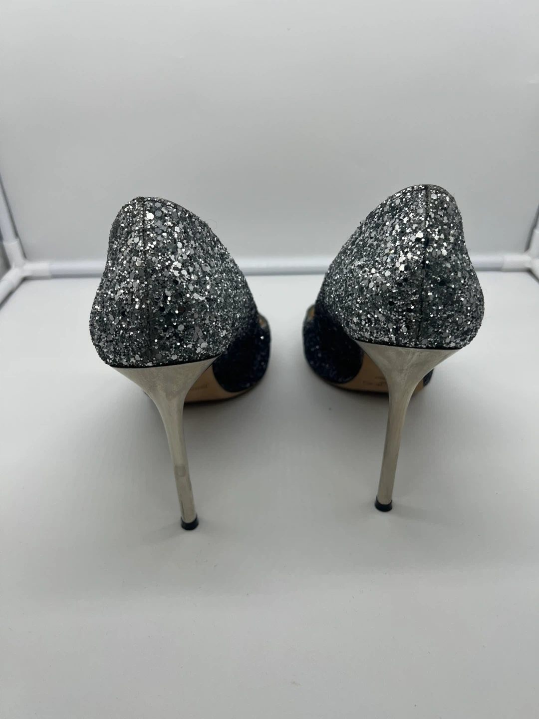 Jimmy Choo Romy 100 Glitter Ombre Navy Silver Heels sz 41