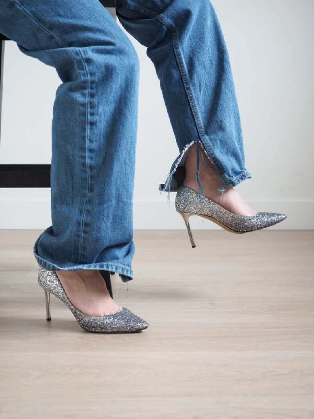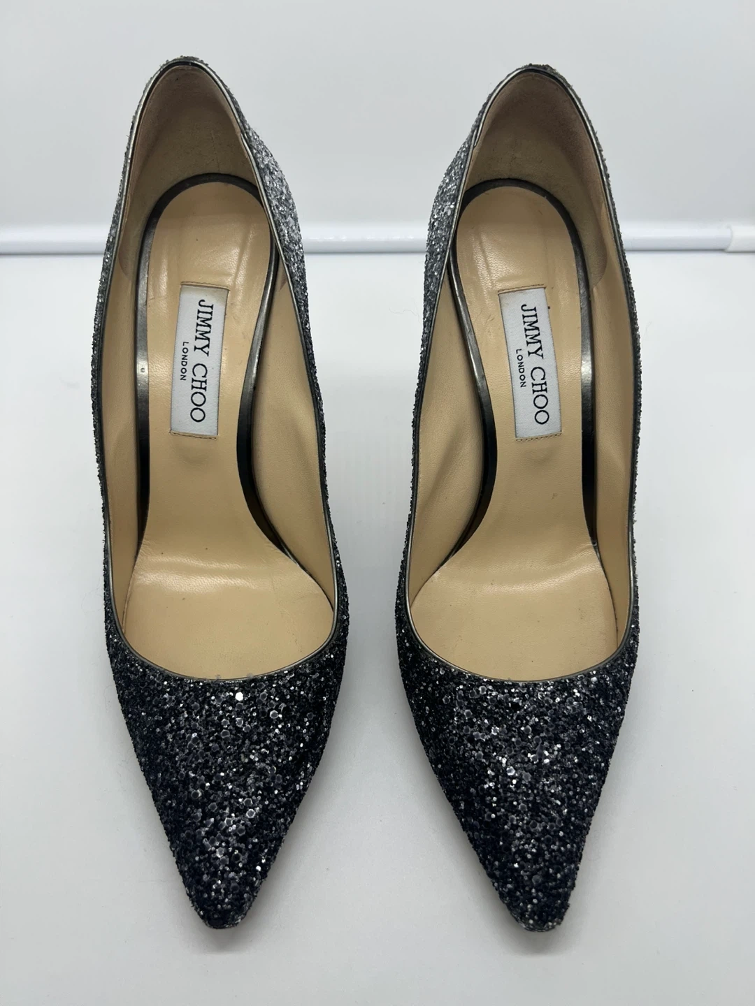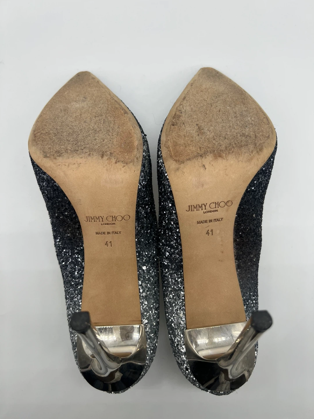 Jimmy Choo Romy 100 Glitter Ombre Navy Silver Heels sz 41