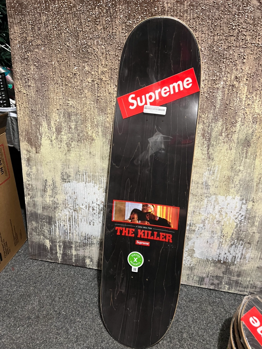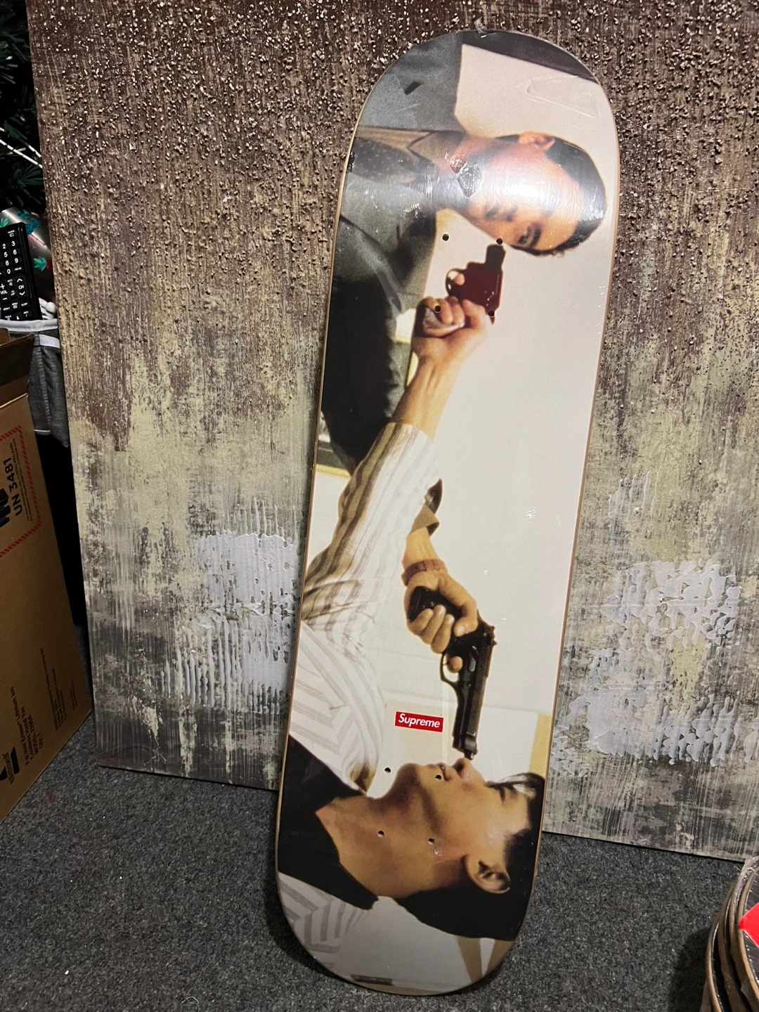 Selling a Supreme skateboard deck featuring "The Killer" design. It's in great condition and ready for a new owner. Check out the photos for details!
