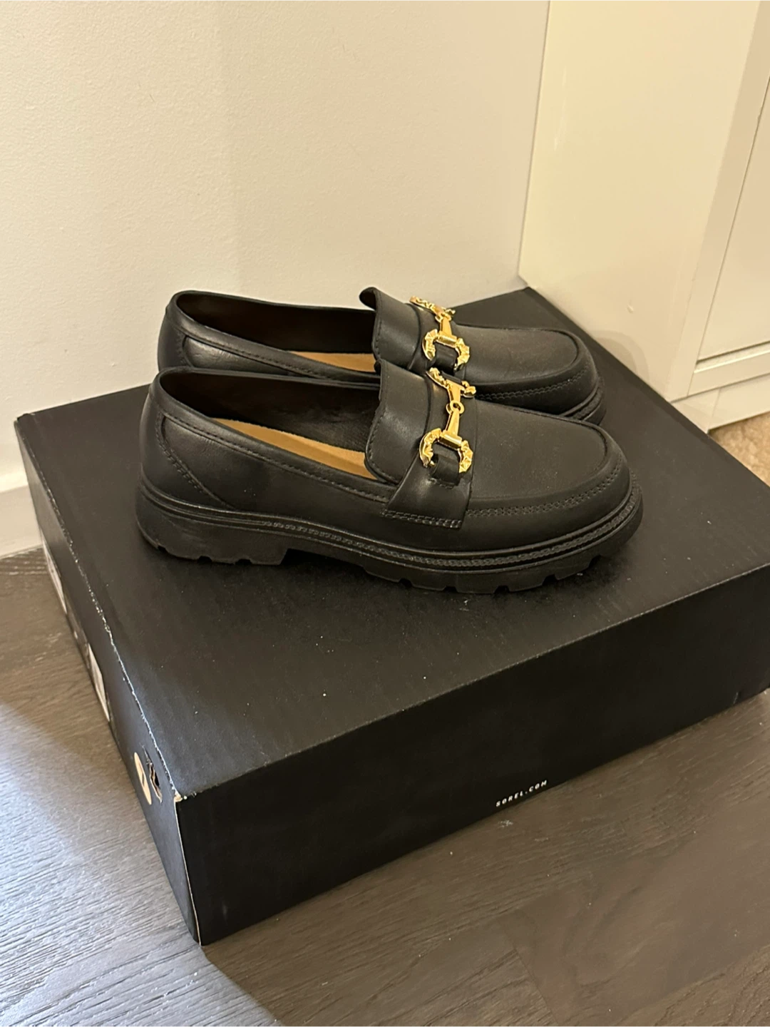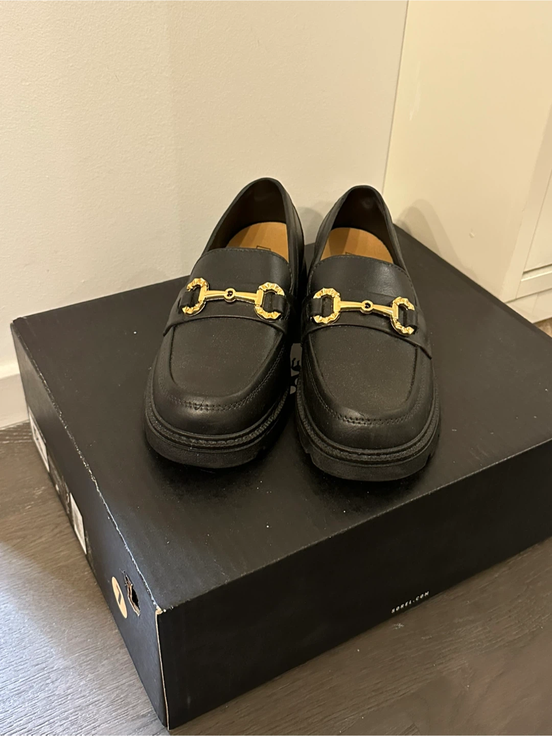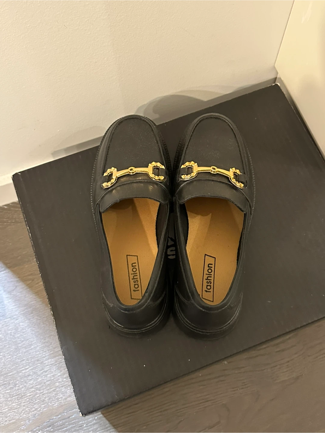 I am selling a pair of black loafers with gold detailing. Bought in Korea 🇰🇷