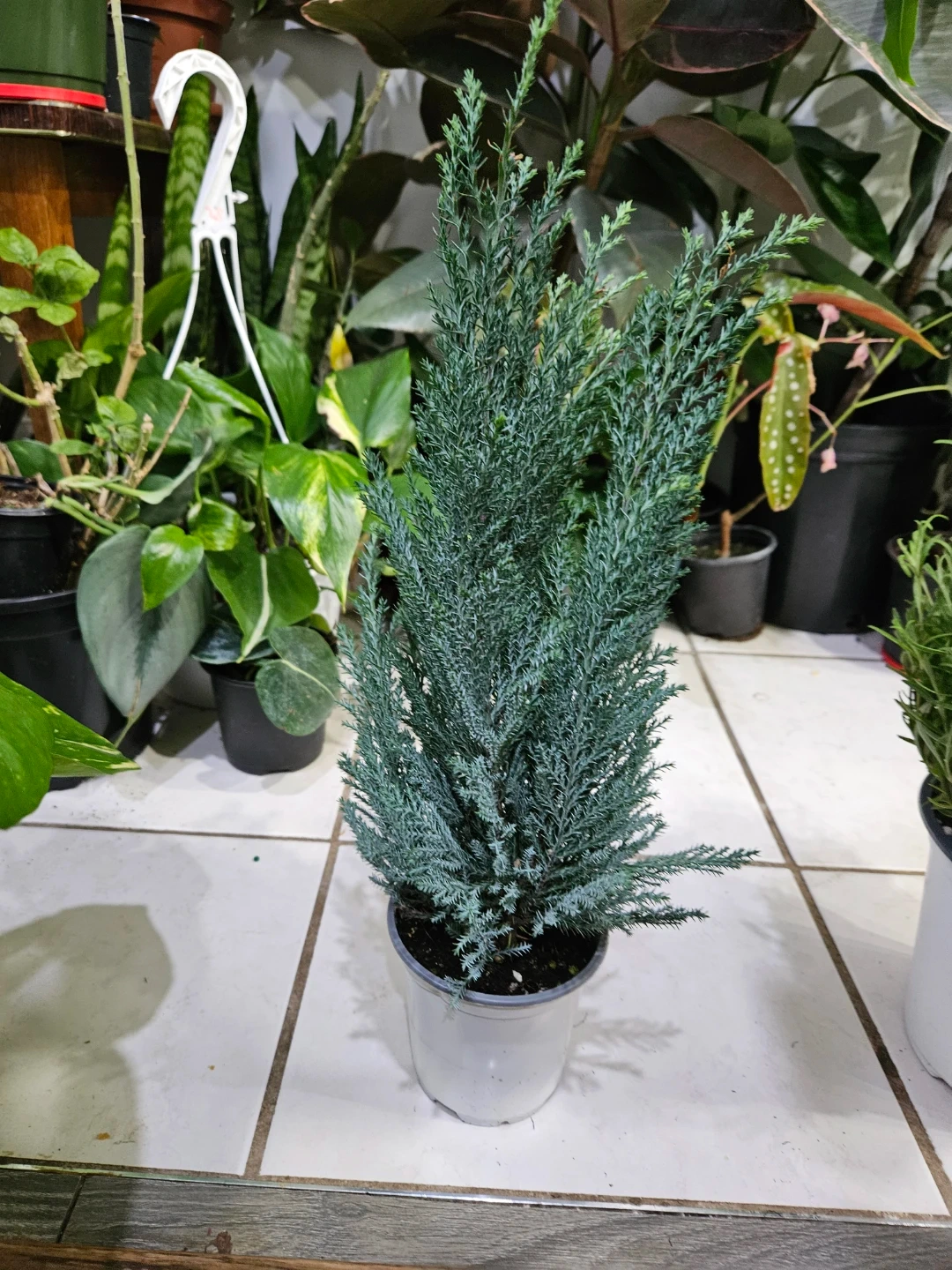 A beautiful Blue Italian Cypress plant to add some greenery to your space! This plant has a lovely blue-green hue and a classic, elegant shape. It's perfect for adding a touch of sophistication to your home or garden