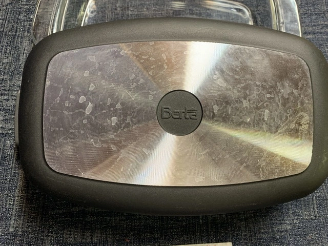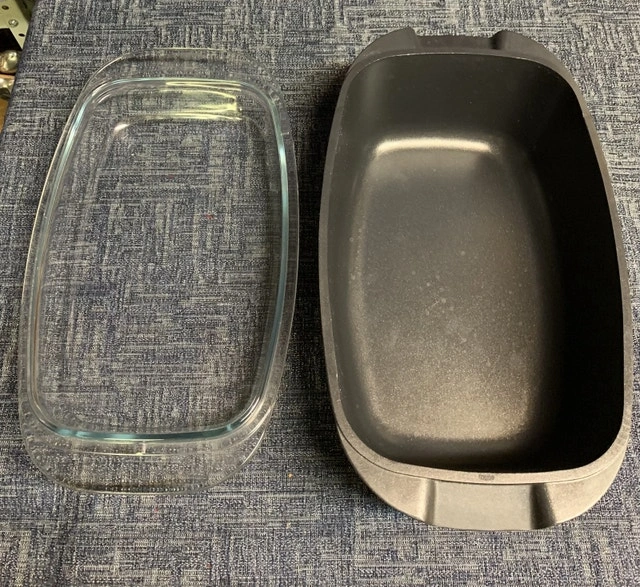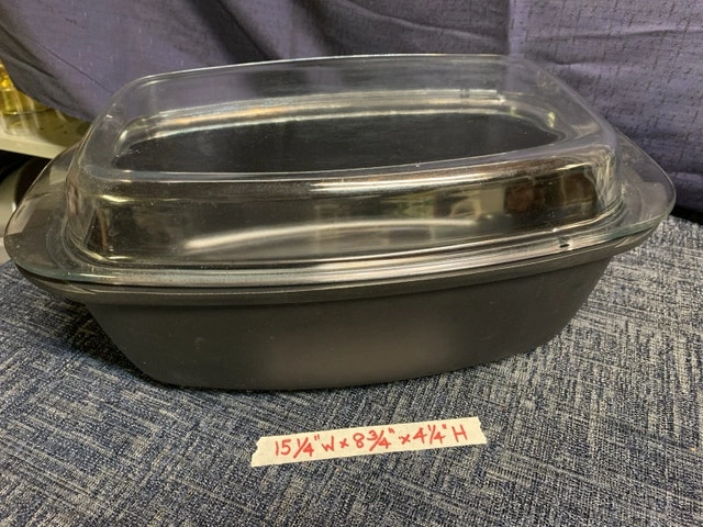 New Berta pot with glass lid. Dimensions are 15 1/4" wide x 8 3/4" deep x 4 1/4" high. It's been sitting in a cupboard and has never been used. Pickup at Winston Churchill Blvd and Burnhamthorpe Rd W in Mississauga.