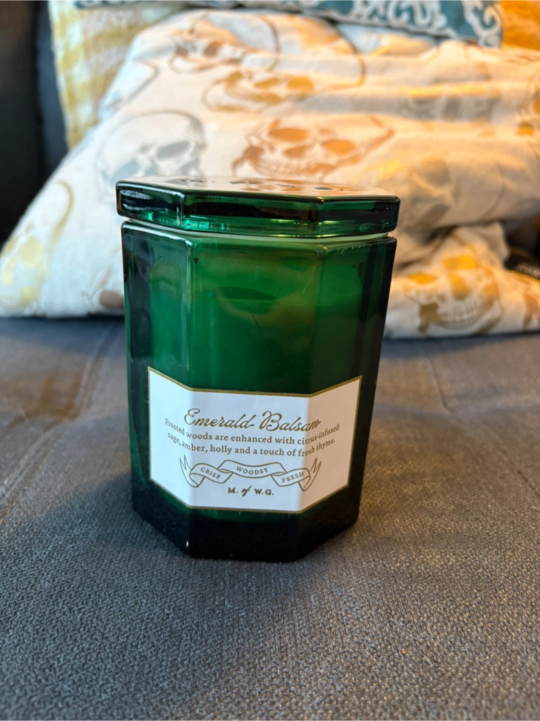Maker of Wax Goods candle, brand new! Frosted woods are enhanced with citrus infused sage, amber, holly and a touch of fresh thyme. Crisp, woodsy, fresh! Retails for $46. 329g. Pickup near Sherbourne and Adelaide Street east or sometimes at some TTC stations.