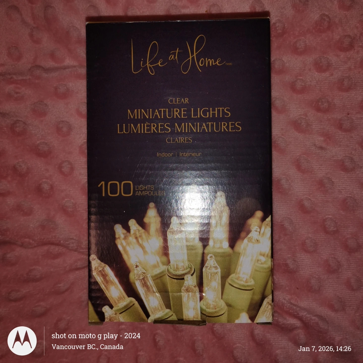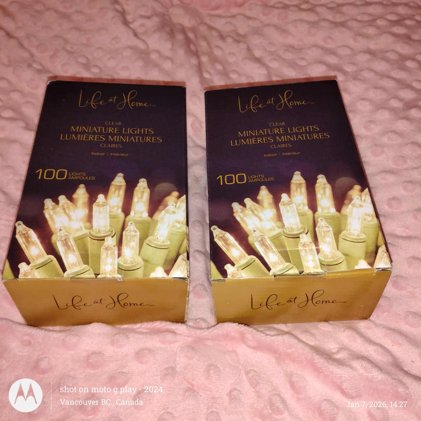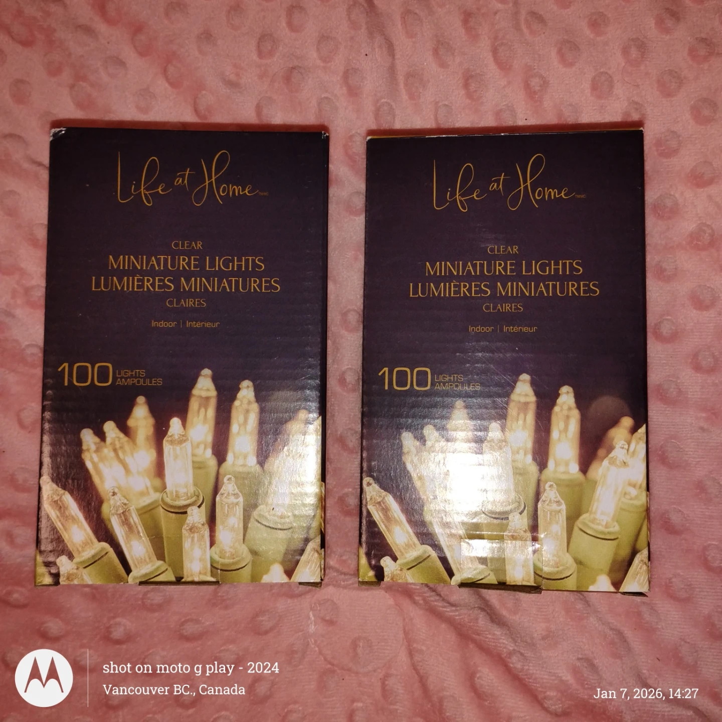 Selling a set of Life at Home clear miniature lights! These are indoor lights and come with 100 lights per set. The lights are in their original packaging