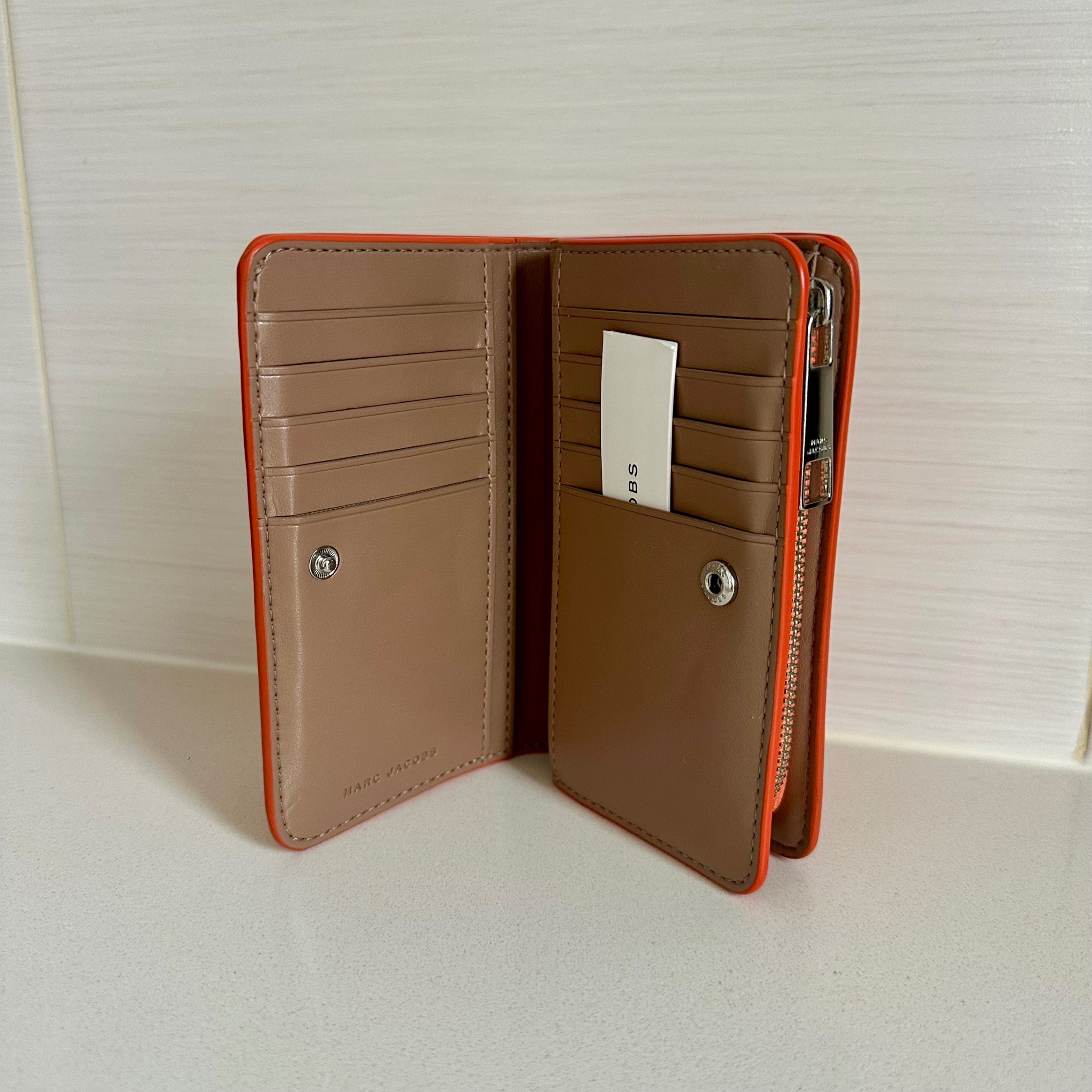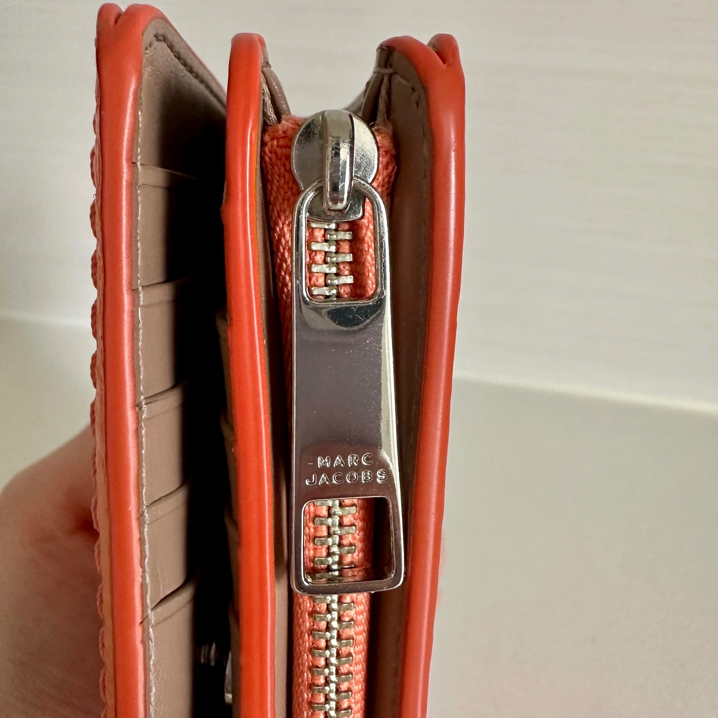 Brand new, never been used, medium sized compact wallet from Marc Jacobs. Colour is melon. Pebbled leather and zip around style. Features credit card slots, billfold slot and coin pocket.