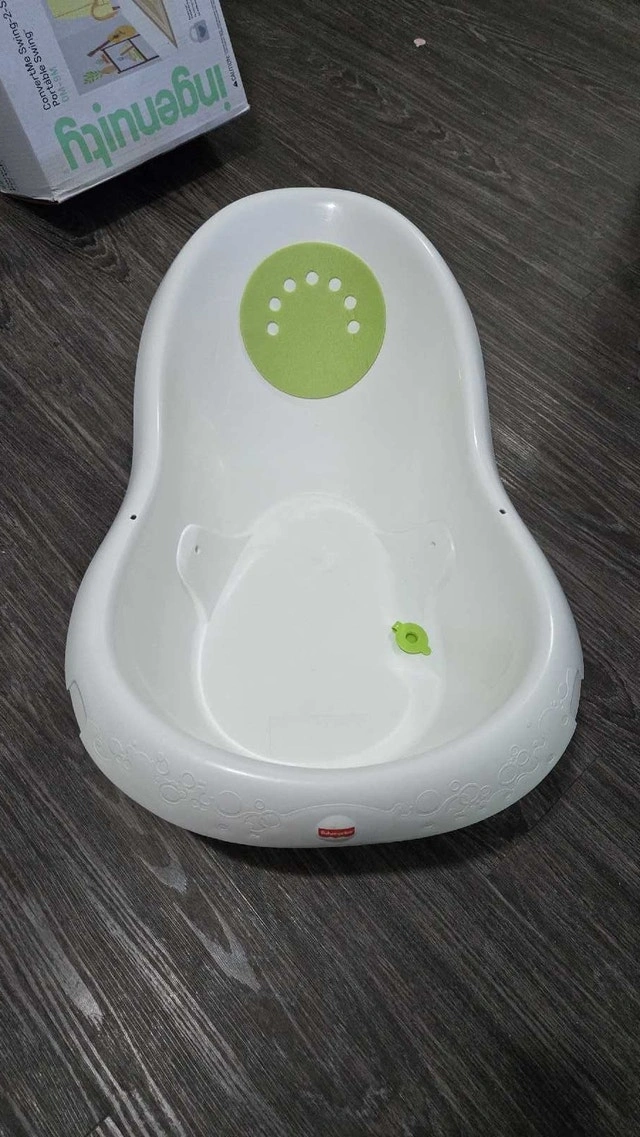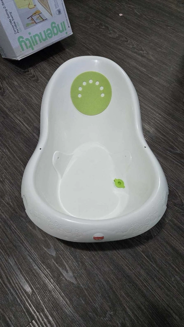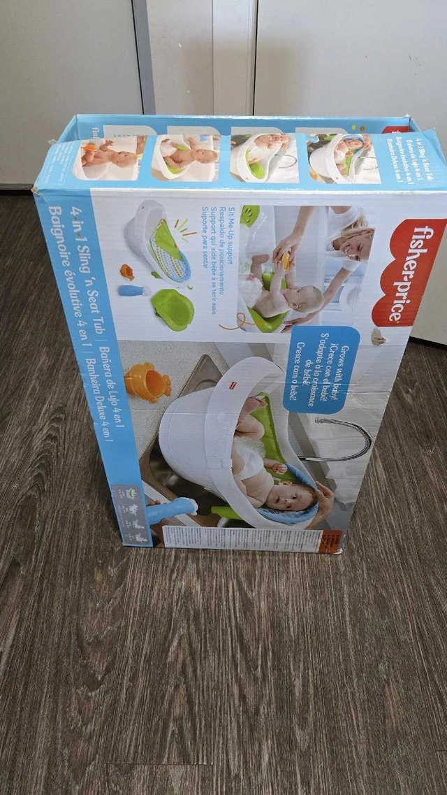 Keep your little one clean and happy with this Fisher-Price 4-in-1 Sling 'n Seat Tub! This adaptable tub grows with your baby, from newborn to toddler, offering a secure and comfy bathing experience at every stage. The tub is in excellent condition, has been thoroughly cleaned, and is ready for its next little bather. Additional details: * Four stages: Newborn sling, infant insert, sit-me-up support, and spacious toddler tub * Built-in hook for easy storage This tub is priced to sell at $25, which is a steal compared to what you'd pay brand new!