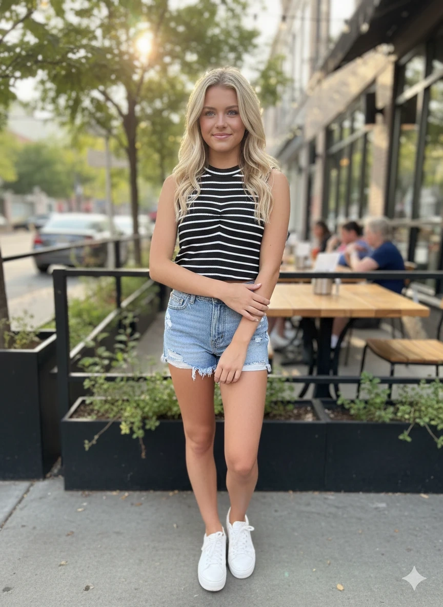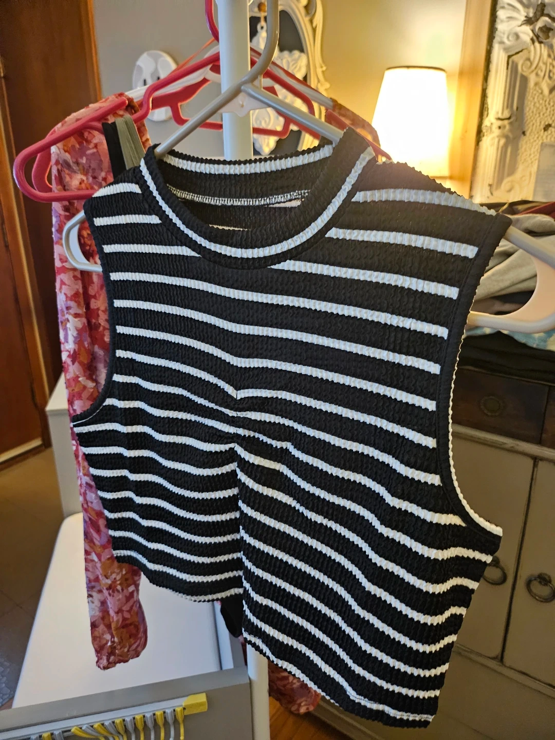 Shein Ribbed Textured Striped Tank Top - Size L 🧡