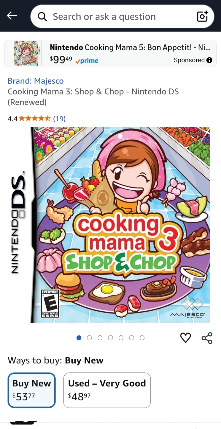 Selling Cooking Mama 3: Shop & Chop for the Nintendo DS! This game is lots of fun for all ages. It's rated E for Everyone. Get ready to cook up some fun! No case.