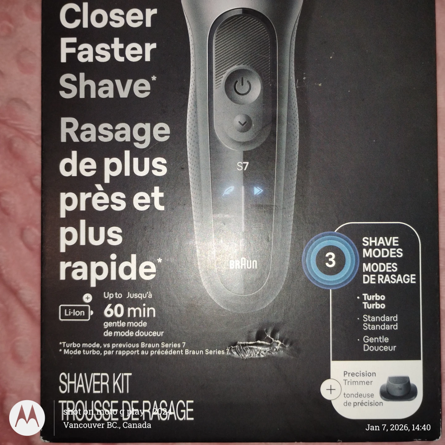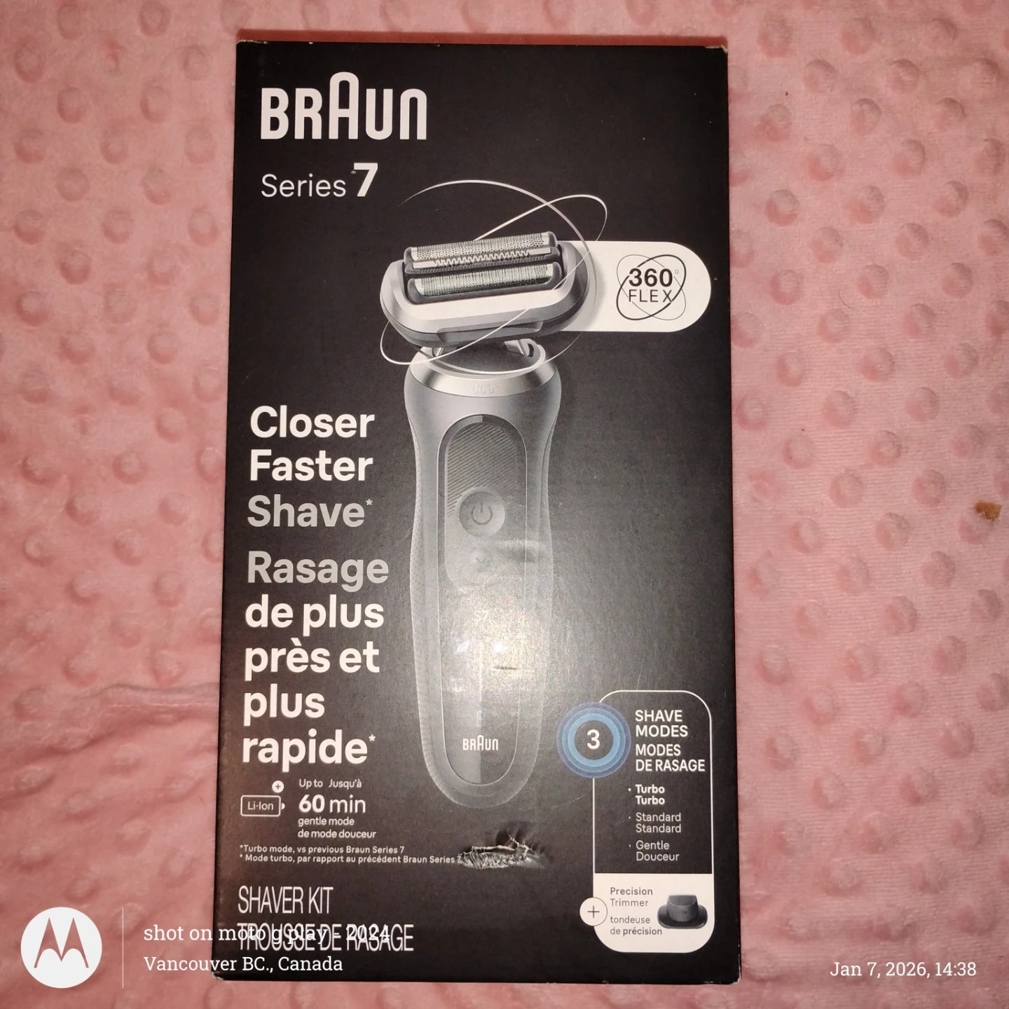 Selling a Braun Series 7 electric shaver in "BRAND NEW" condition! It comes with the box and all original components. This shaver features 360° flex technology for a smooth shave and offers three shave modes: Turbo, Standard, and Gentle. Get a closer, faster shave with this shaver kit!
