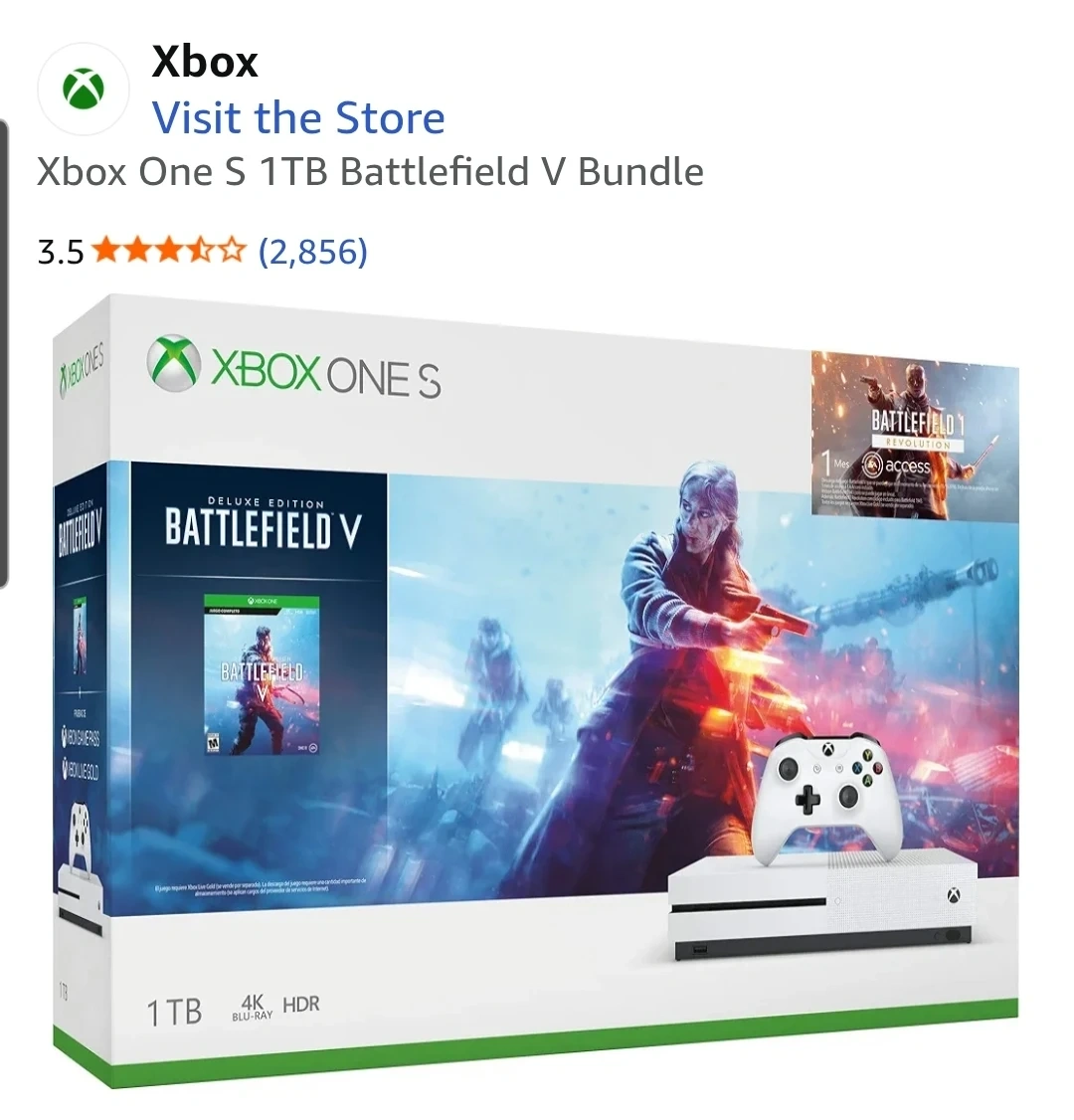 Selling an Xbox One S 1TB Battlefield V bundle in white! It comes with the box and all the included components. Enjoy 4K and HDR gaming with this console. Also includes Xbox Game Pass for instant access to over 100 games. Never used