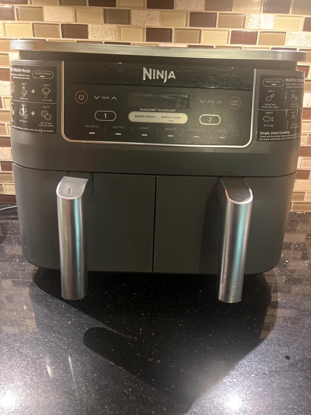 Selling a Ninja Dual Zone Technology air fryer. It has a smart finish and match cook setting. It can air broil, air fry, roast, reheat, dehydrate, and bake! Great for cooking two different foods at once.