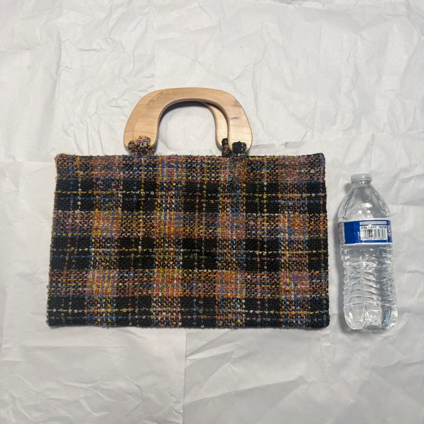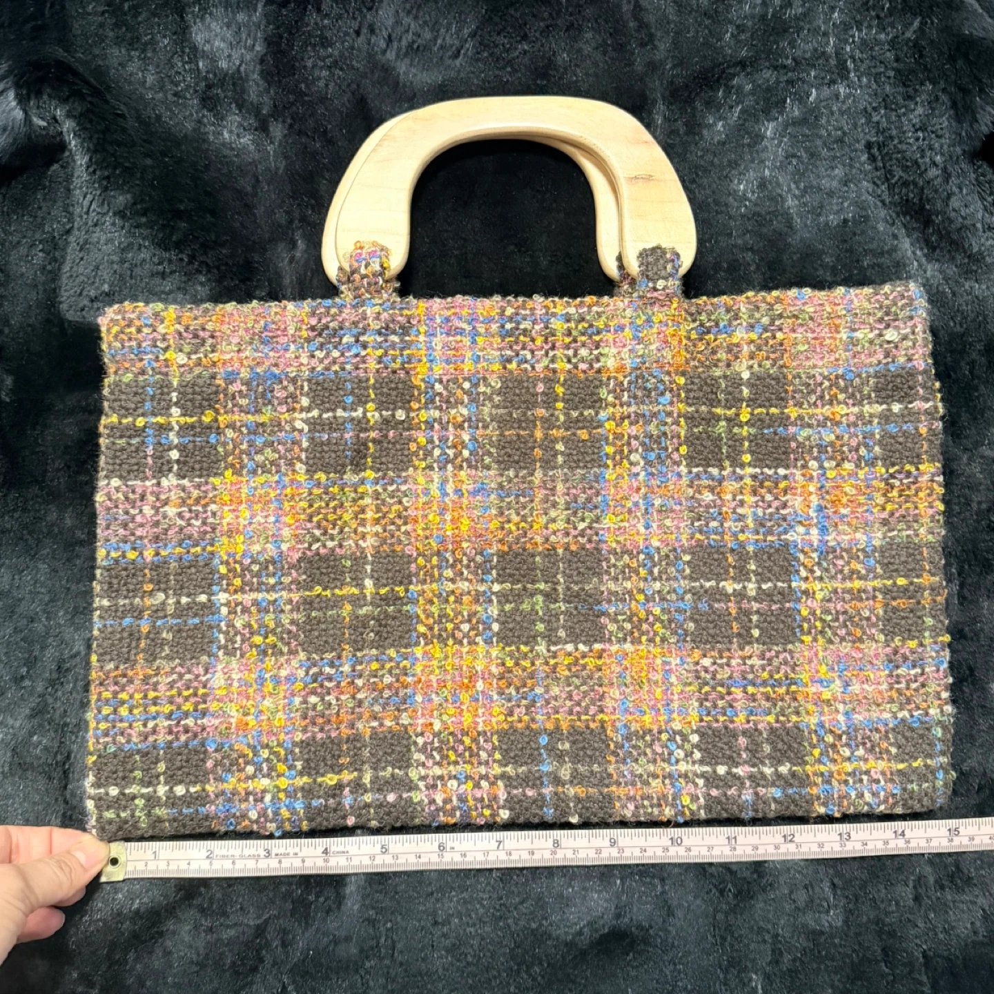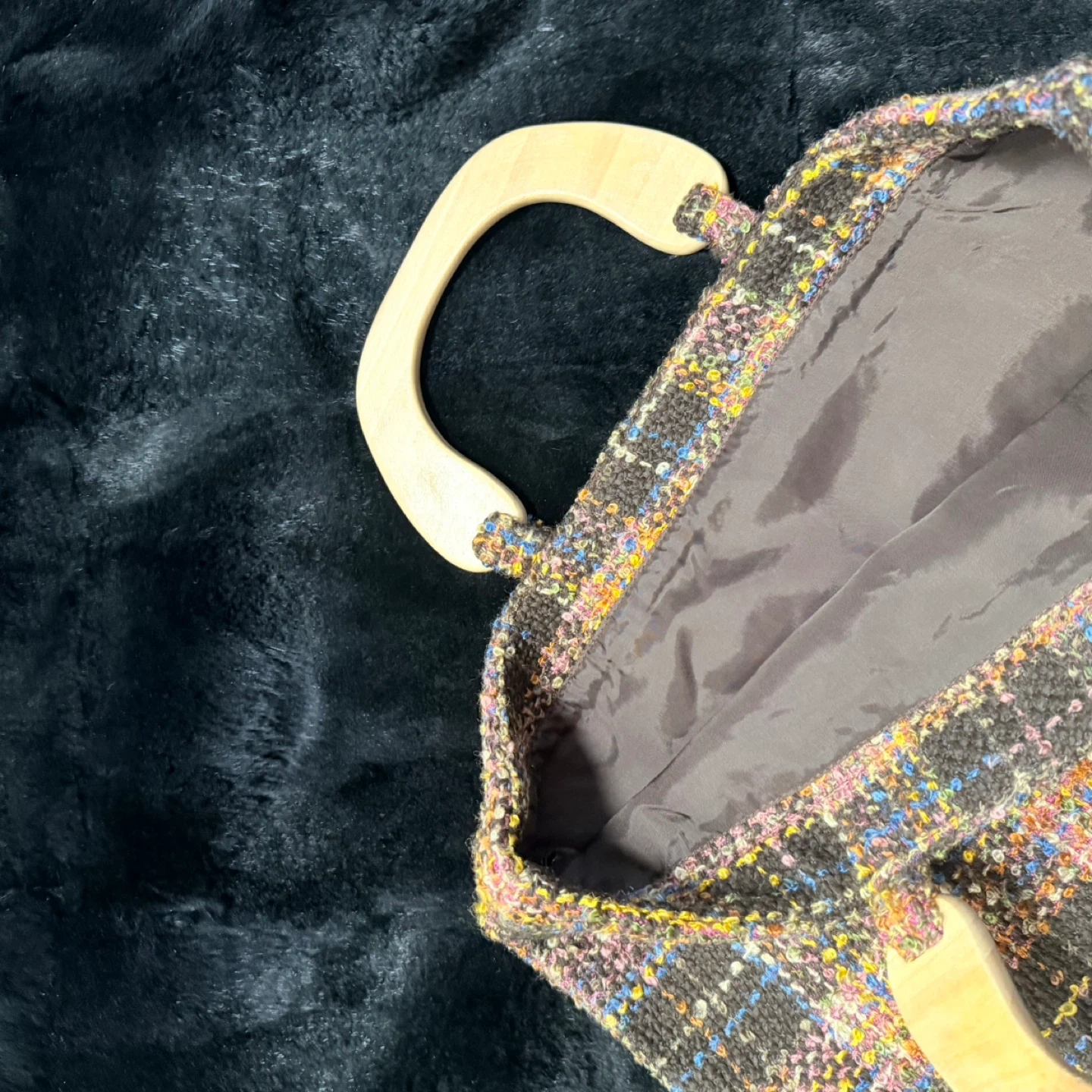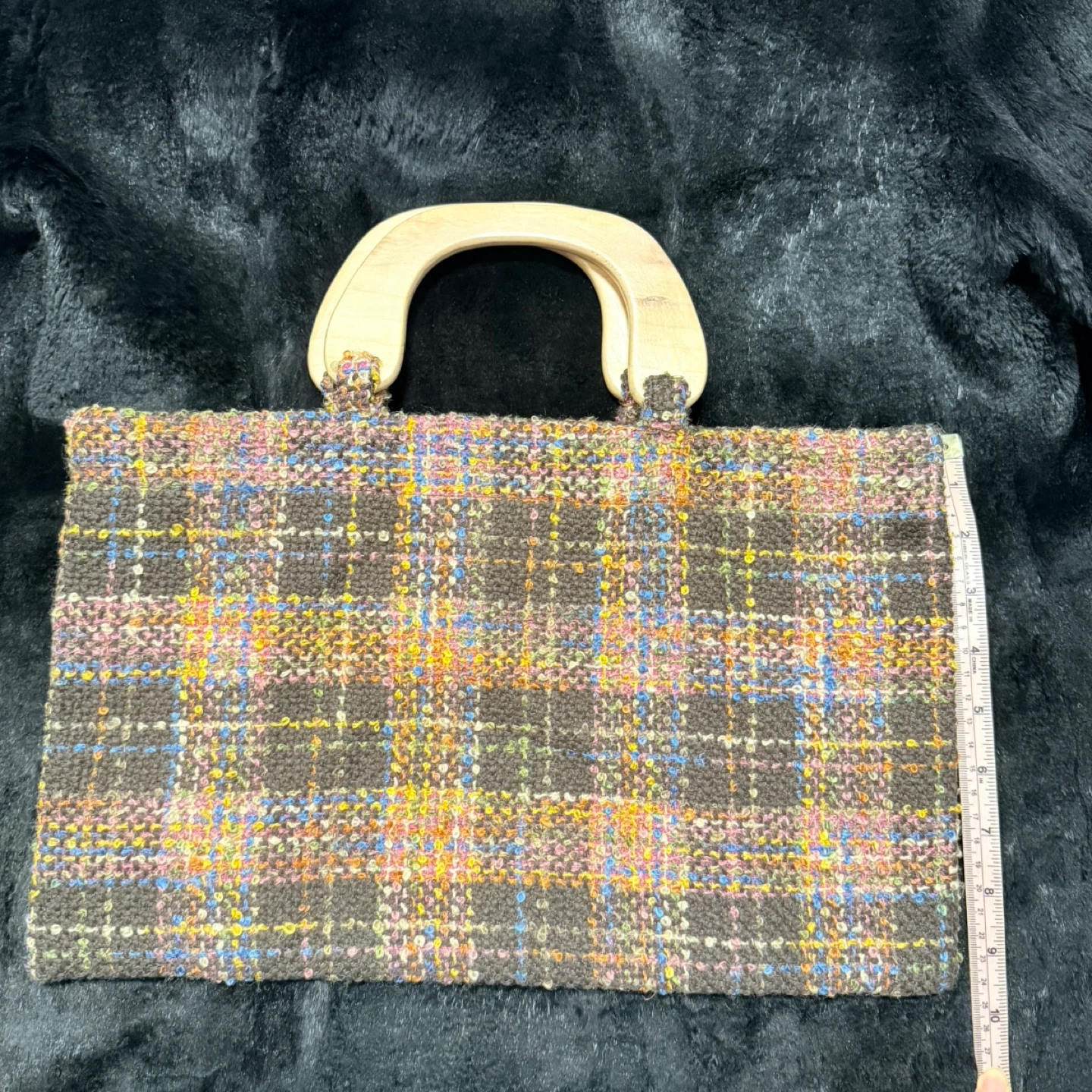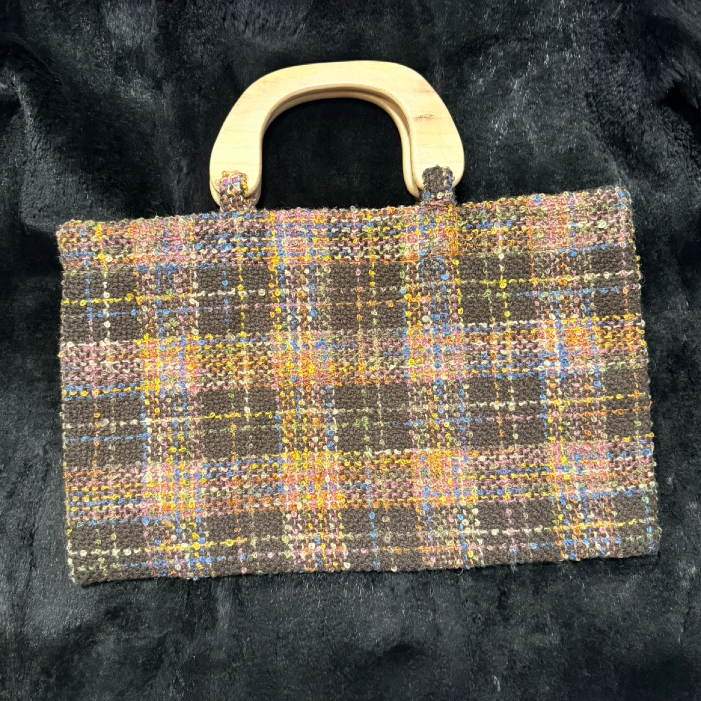 Handmade Tweed Handbag with Wooden Handles
