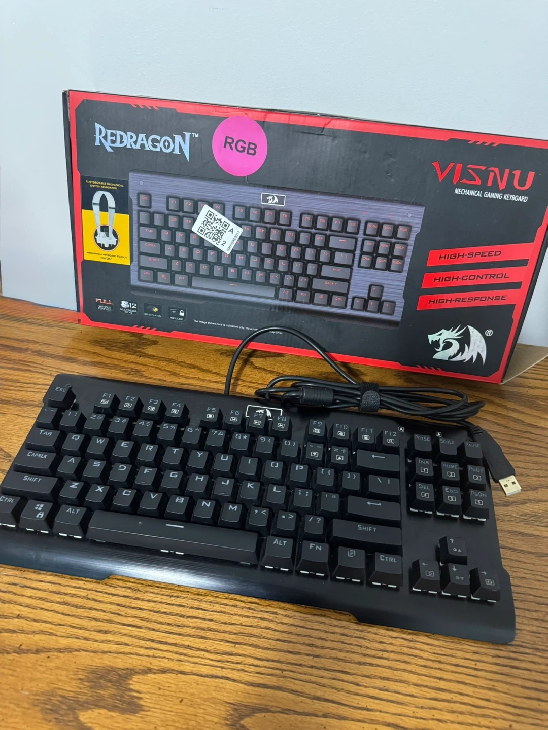 Selling a Redragon Visnu mechanical gaming keyboard! It's in great condition and comes with the original box. This keyboard is designed for high-speed and high-response gaming, making it a fantastic addition to any setup