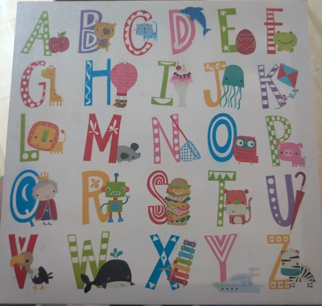 Here's a fun alphabet learning board for kids! Each letter has a corresponding image to help children learn their ABCs in a playful way