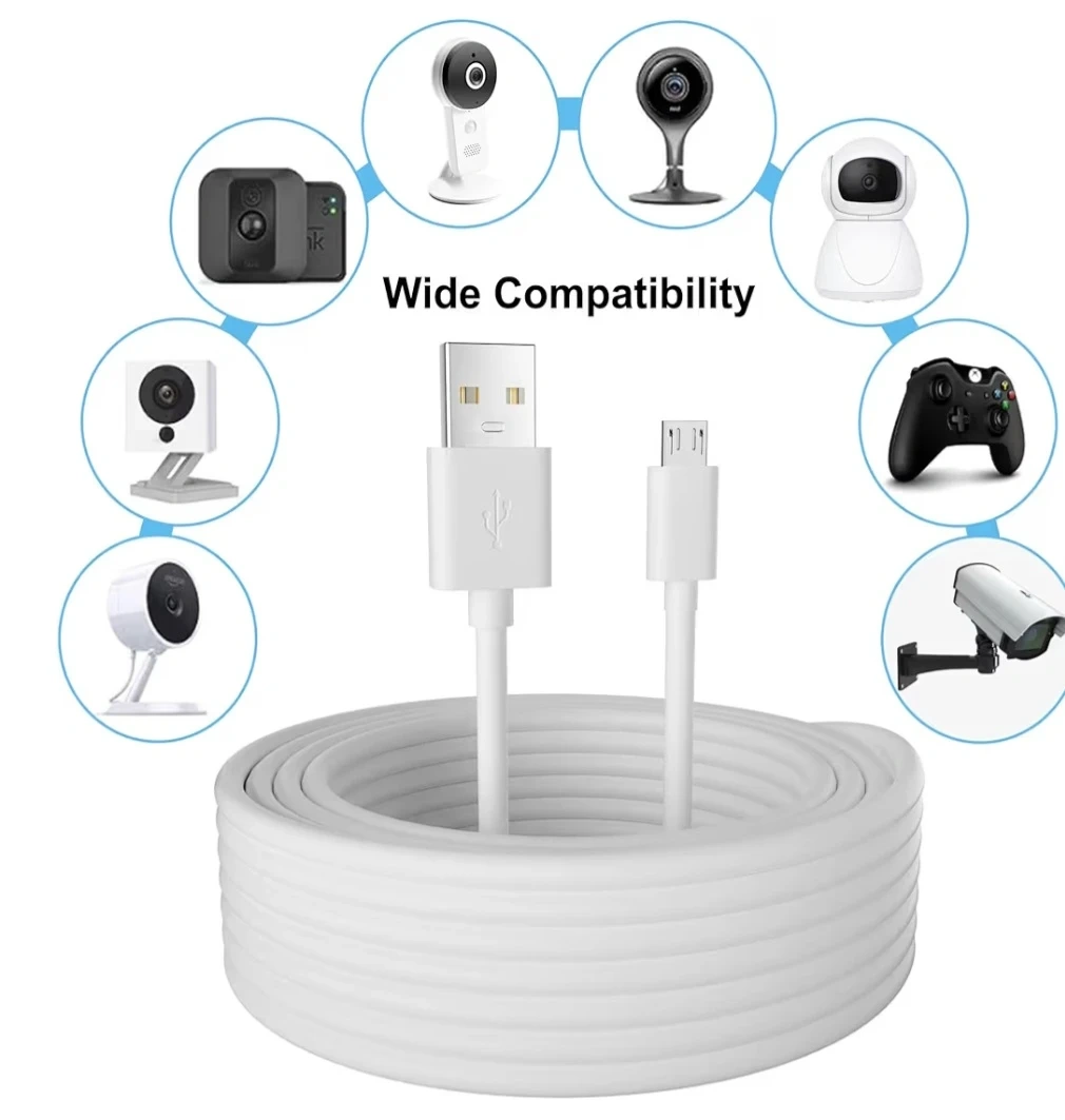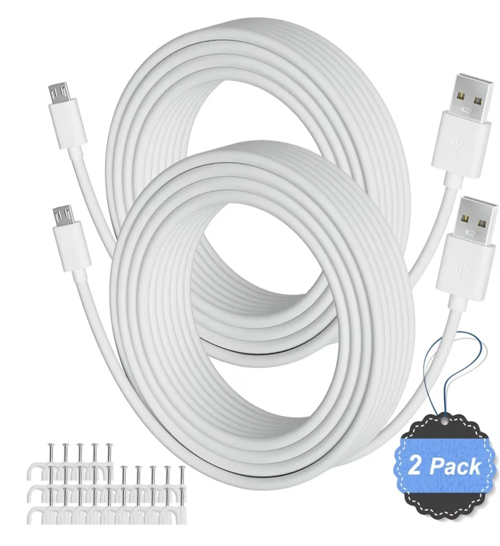 2-Pack 20FT USB to Micro USB Extension Power Cable, Long Charging Cord, 21AWG OFC, Oxygen-Free Copper, Compatible with Wyze Cam, Nest Cam, Yi Home Camera, Kasa Cam Security Camera, White