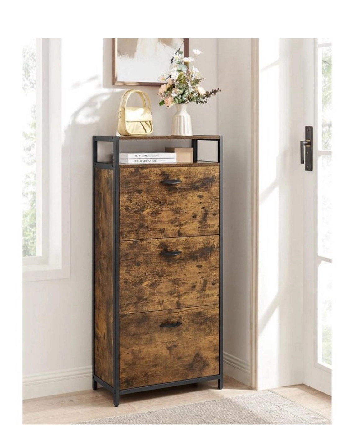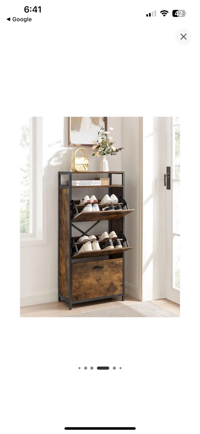 Tall Rustic Brown Shoe Storage Cabinet 3 flip doors