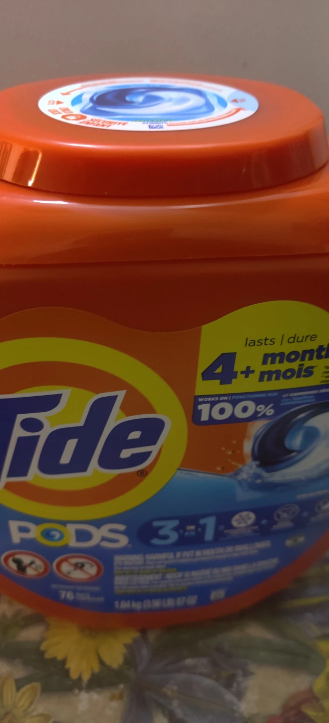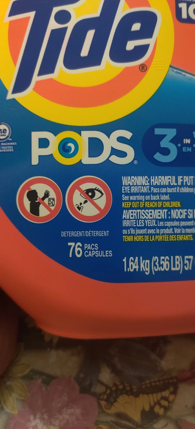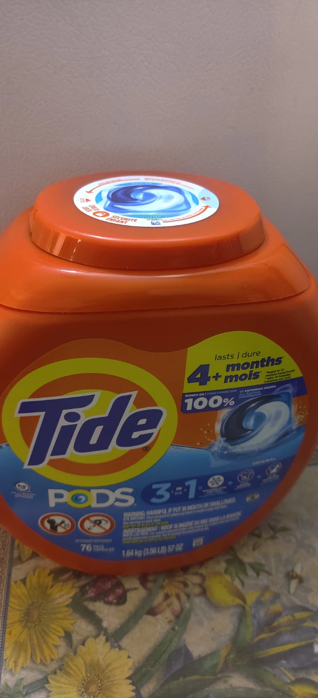 Selling a container of Tide Pods 3-in-1, with 76 capsules.