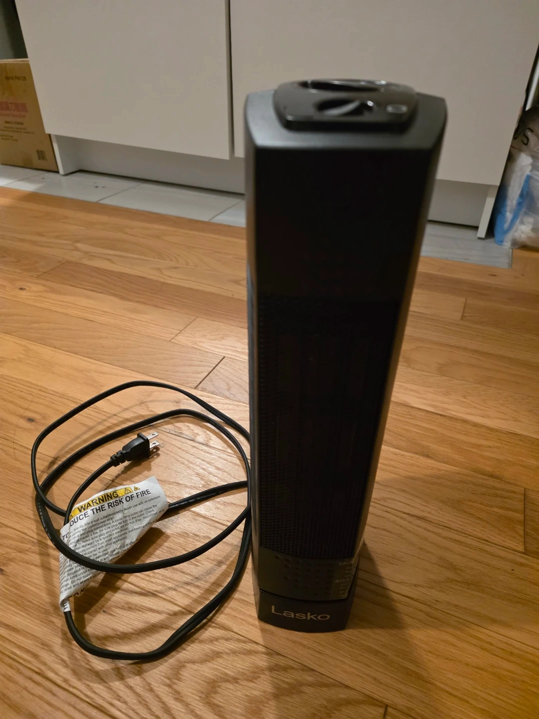 Selling a Lasko tower heater in black. It's in great condition and ready to keep you warm during the colder months. Perfect for a small space or to supplement your existing heating system
