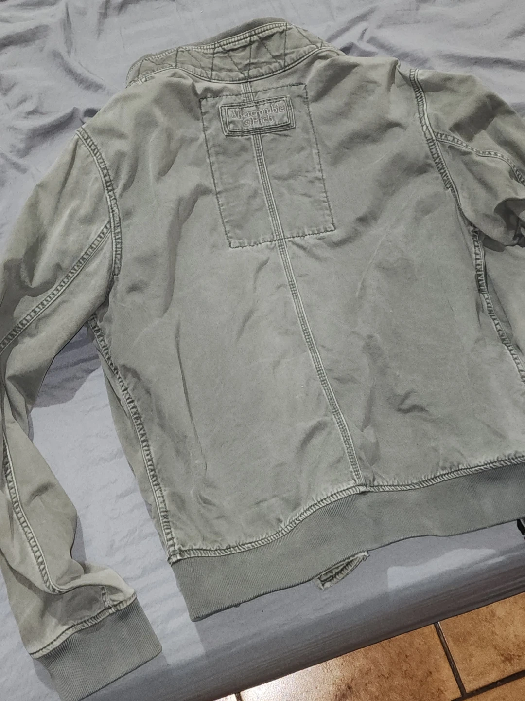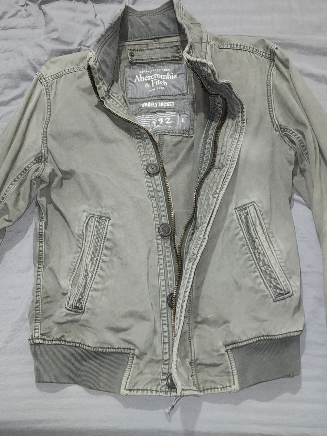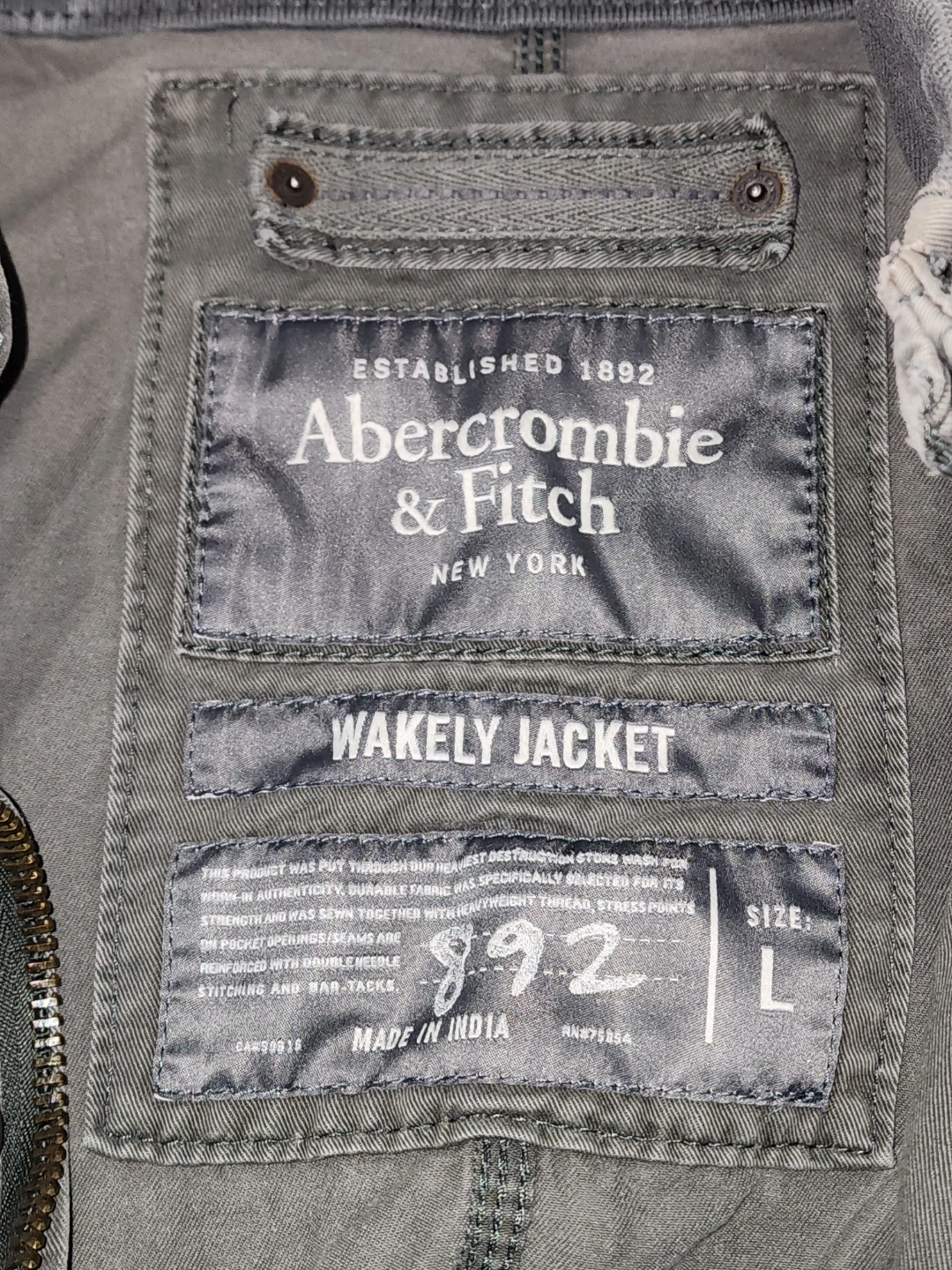 Selling an Abercrombie & Fitch Wakely Jacket in size L! It's a durable fabric that's been stone washed for a worn-in look. Reinforced openings and seams, with double needle stitching and bar-tacks