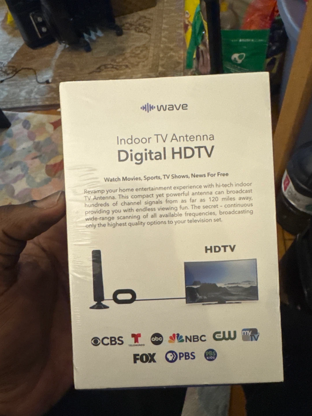 Selling a brand new Wave Indoor TV Antenna Digital HDTV. It supports 4K Ultra HD and 1080p Full HD. Watch movies, sports, TV shows, and news for free!
