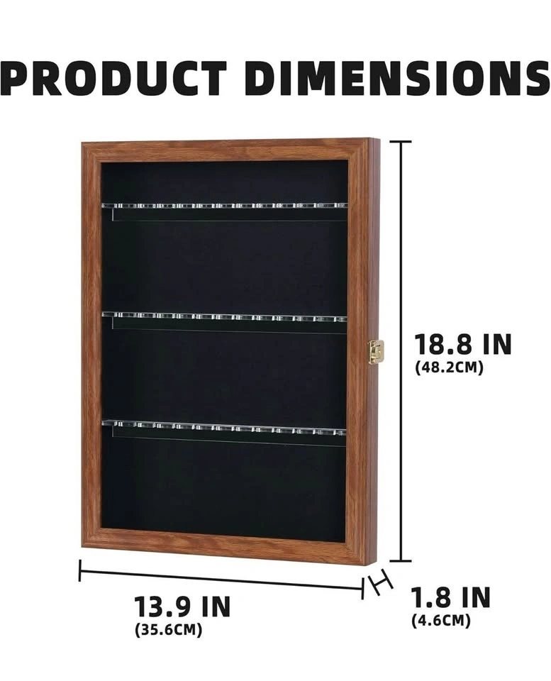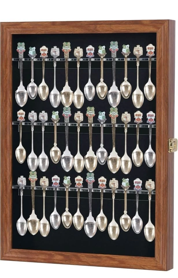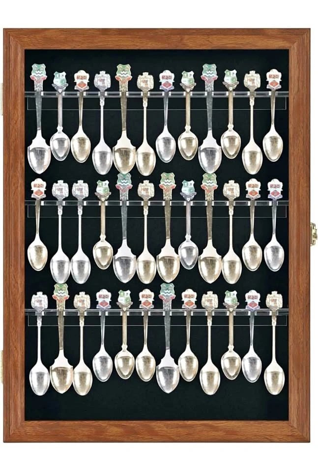 36 Souvenir Tea Spoon Solid Wood Display Case Rack Cabinet with Glass Door Walnut Finish