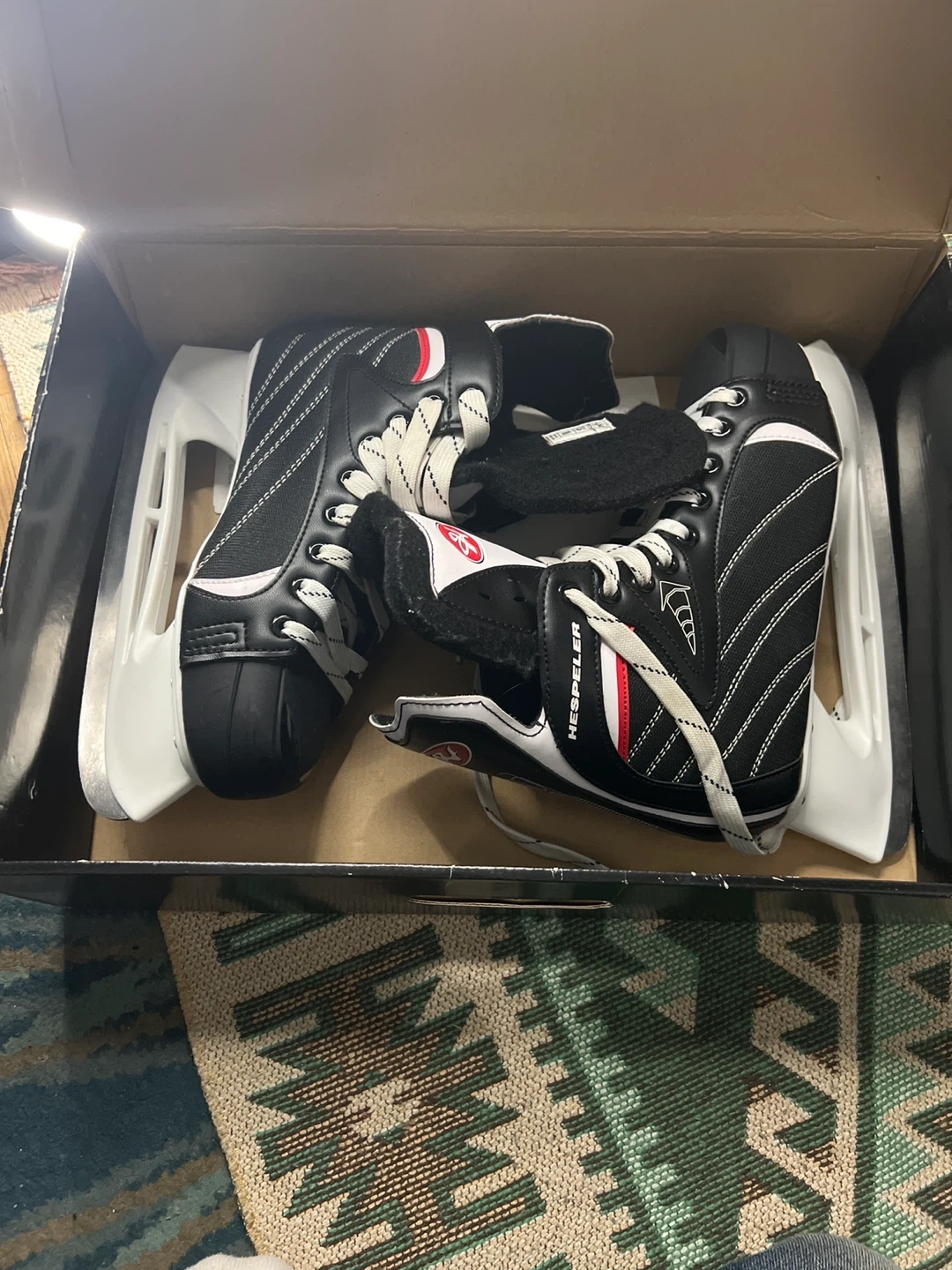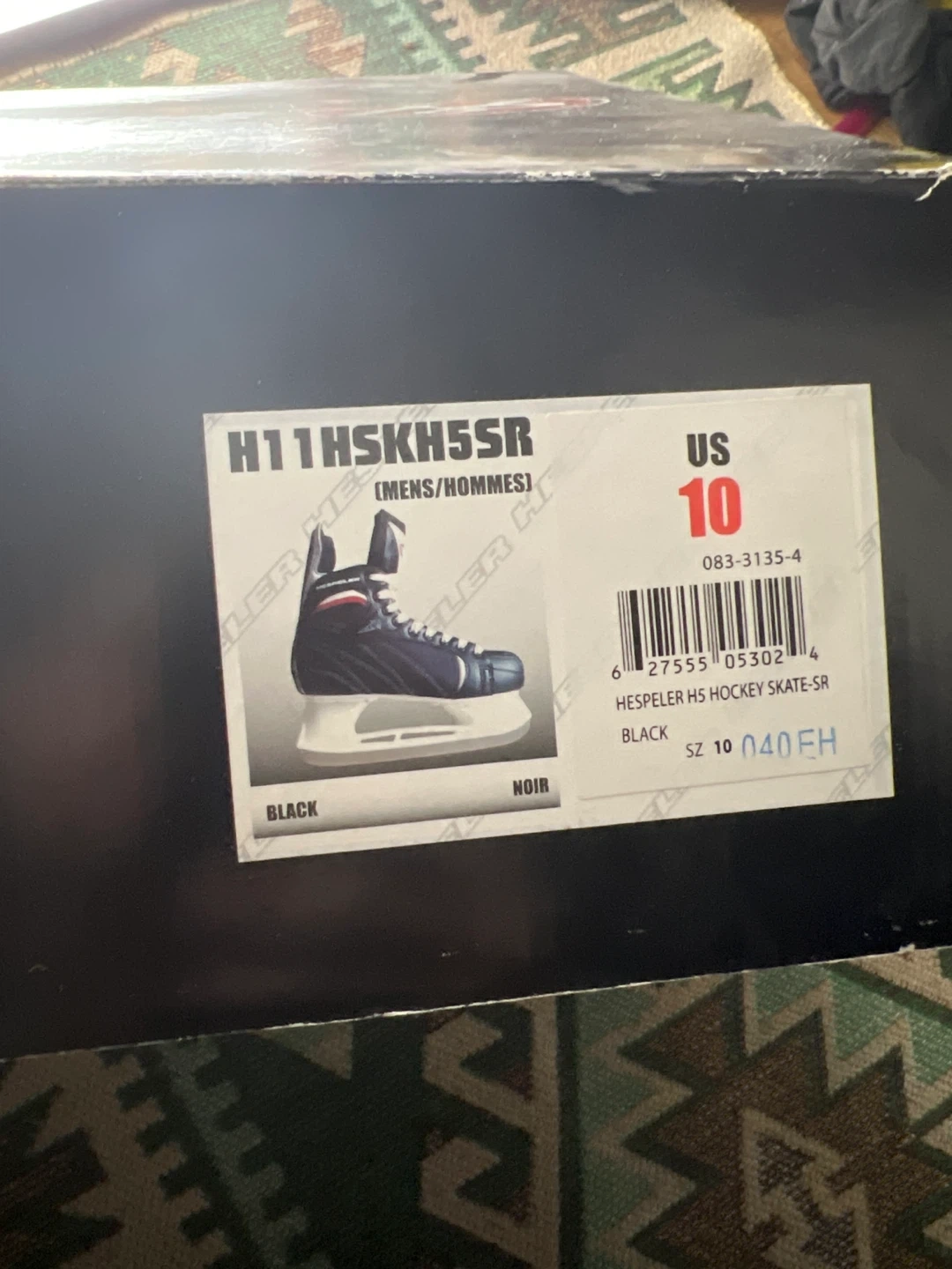 Selling a pair of Hespeler H5 hockey skates in black. They are size 10 US and come in the original box. Great for hitting the ice!
