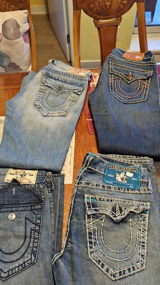 These pants are brand new to new in their stickers. I have many True Religion jeans and one William Rast jeans that are of different models and sizes. Here are the following sizes: