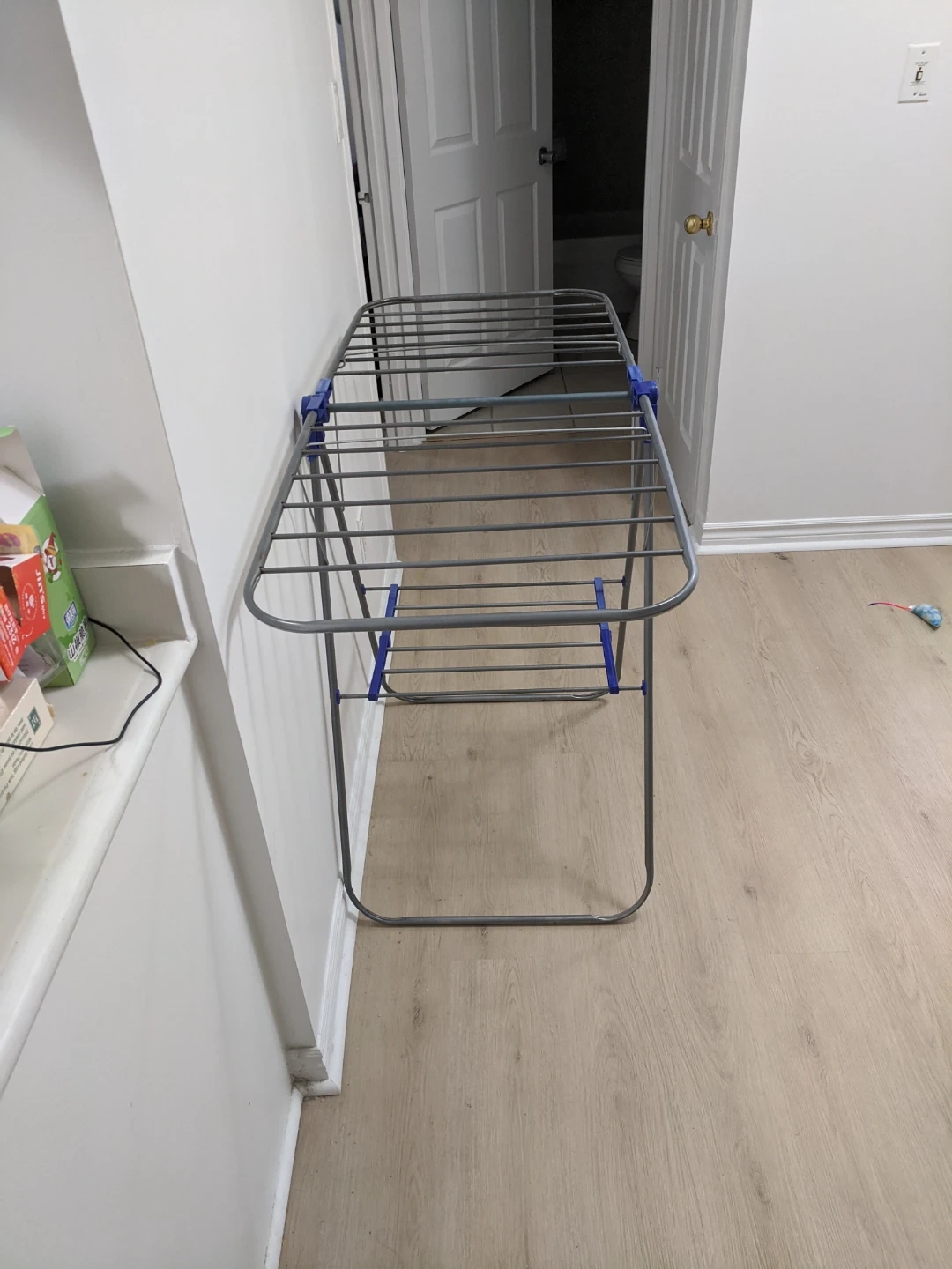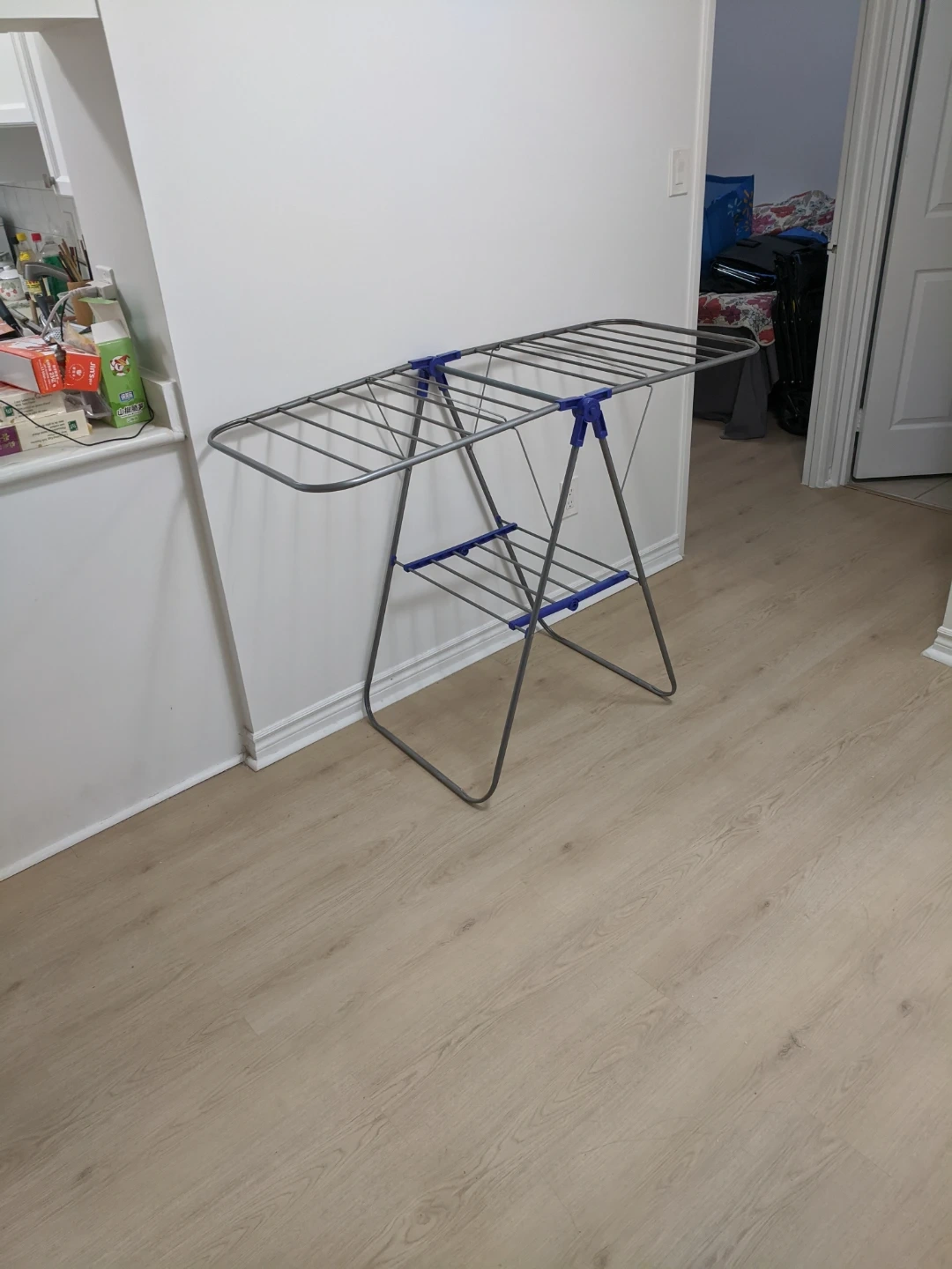 Selling a handy folding clothes drying rack! It's in great shape and perfect for apartments or anyone who wants to save on dryer costs. Folds up easily for storage when not in use. Pick up at 195 Merton Street Toronto or pick up at subway station Davisvill. And I can deliver it to your house but you need to pay me another $3. Thanks.