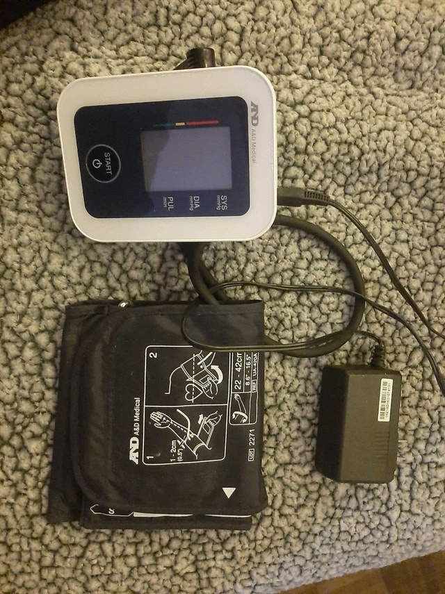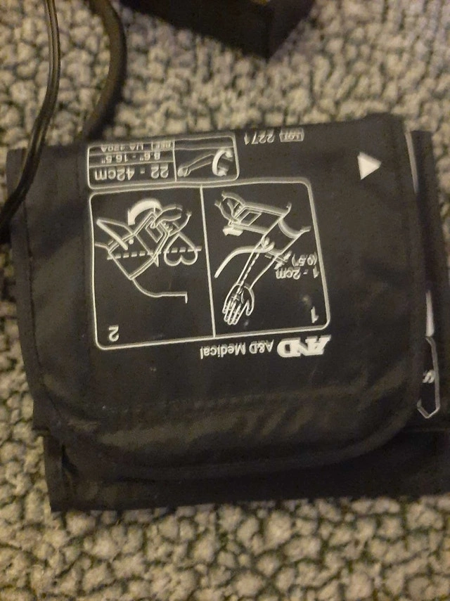 I am selling a used A&D Medical blood pressure monitor that's in good condition, perfect for keeping track of your health from home. This device is designed for easy and accurate readings. Key features include: * Large digital display for easy reading * One-touch operation * Cuff size: 22-42cm