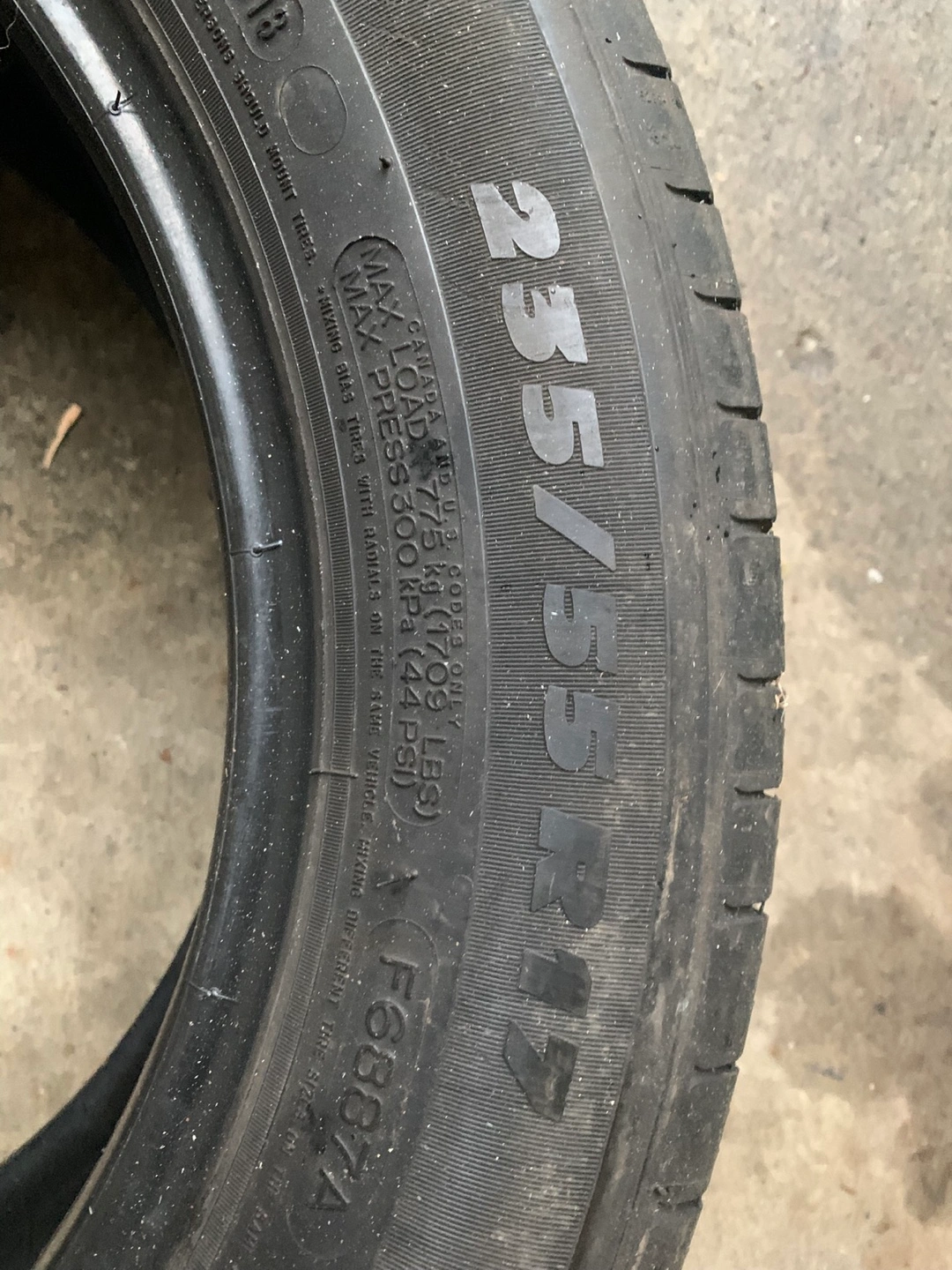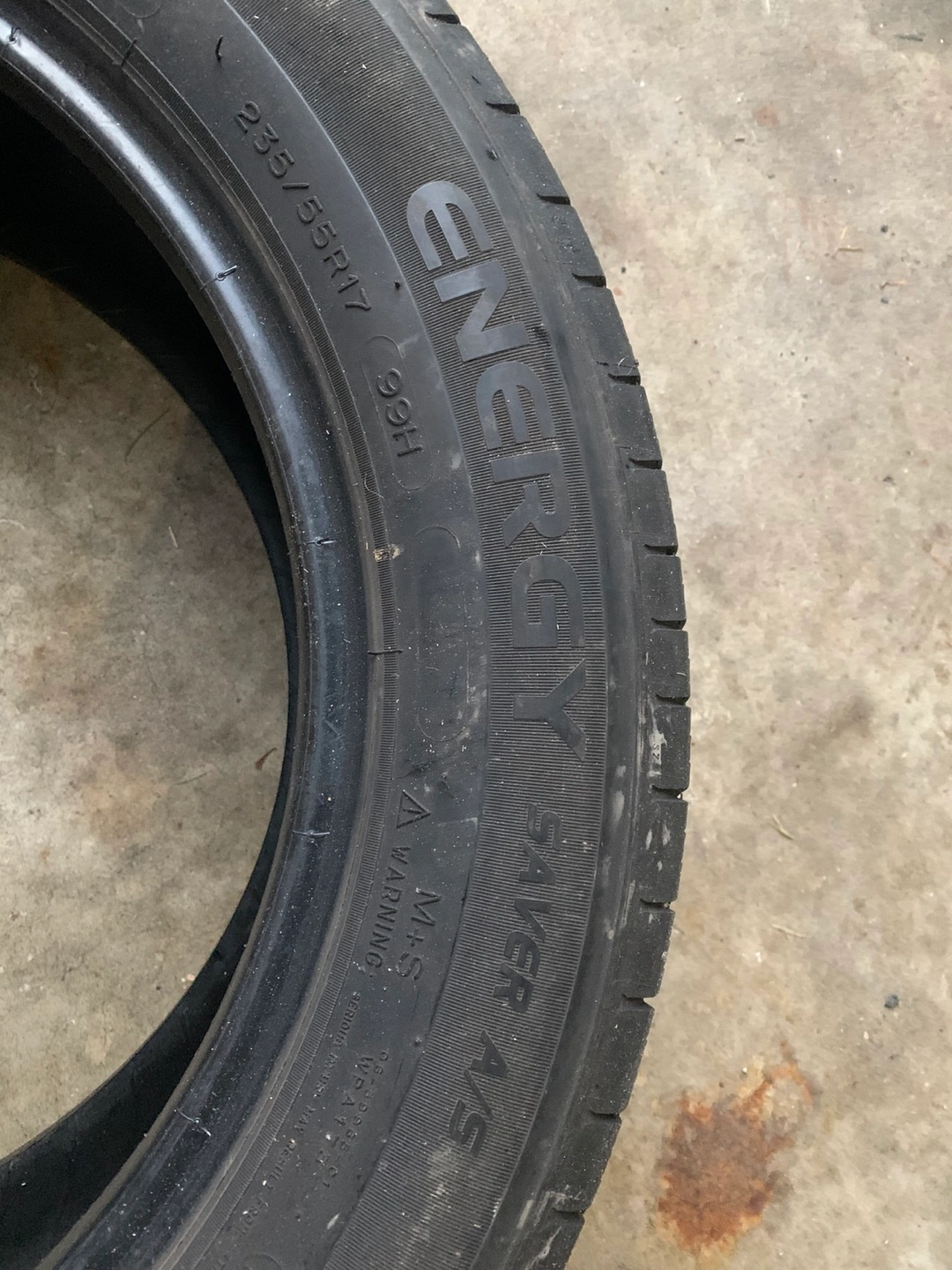 Selling a set of four Michelin Energy Saver A/S tires. Tire size is 235/55R17. They are in used condition and ready for vehicle! They are all season