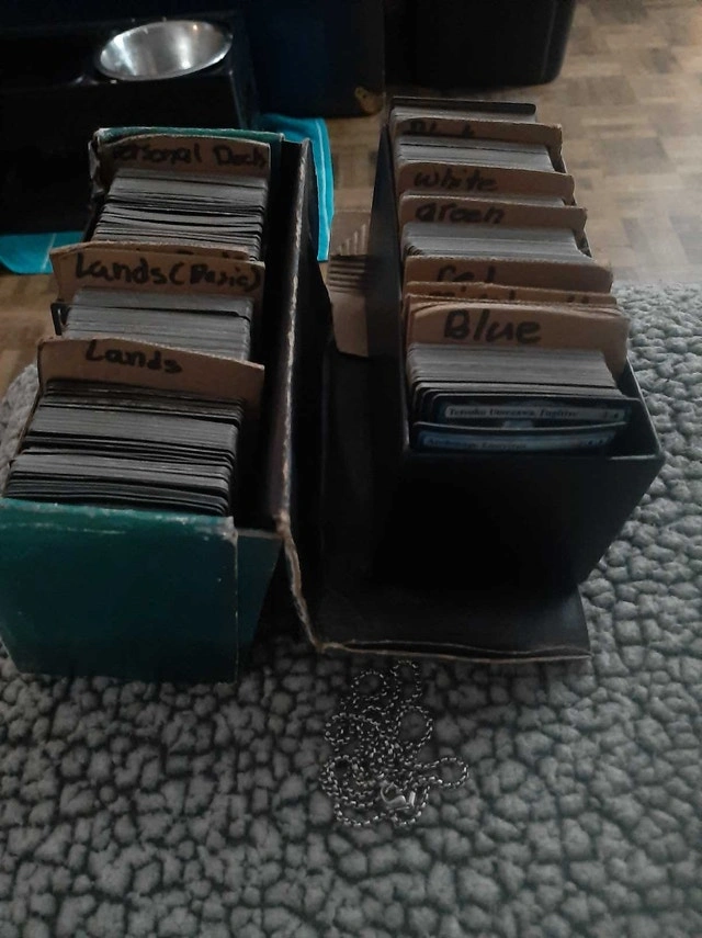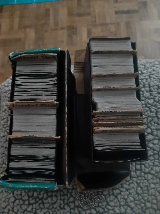 Selling a large collection of Magic The Gathering cards in used condition, perfect for collectors or players looking to expand their decks. These cards have been stored carefully, but since they've seen some action, their condition reflects that they are used. While I don't have a specific list of all cards, the collection includes a variety of sets and rarities, offering a great mix for different play styles and collecting interests. If the ad is up, the cards are still available!