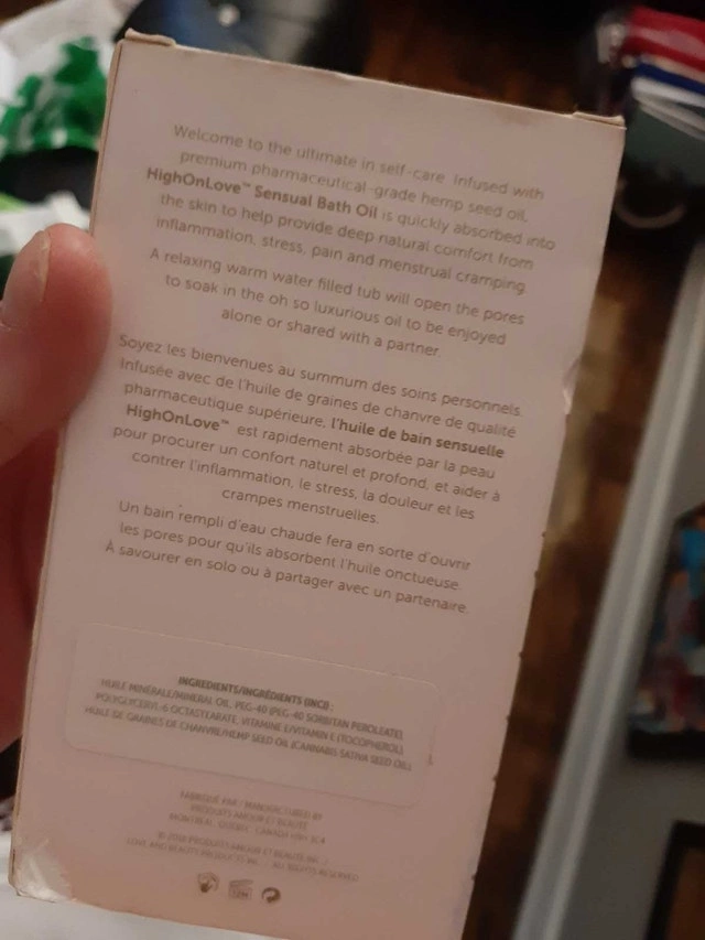 Enhance your bath with HighOnLove Sensual Bath Oil, a luxurious blend of lavender and honeybee in a 100ml bottle, infused with premium pharmaceutical-grade hemp seed oil, quickly absorbed into the skin to help provide deep natural comfort from inflammation, stress, pain and menstrual cramping. This is a new item. Additional details: