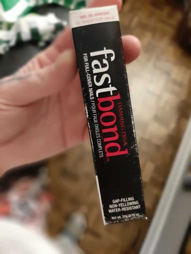 I'm selling Dashing Diva Fastbond nail glue, perfect for applying full-cover nails with a gap-filling, non-yellowing, and water-resistant formula in a 20g tube. This item is in used condition, with some wear visible on the packaging, but the glue is still effective for ensuring your faux nails stay put. It's like having a tiny construction crew for your nails, ensuring everything stays perfectly in place. If the ad is up, the Fastbond is ready for action!
