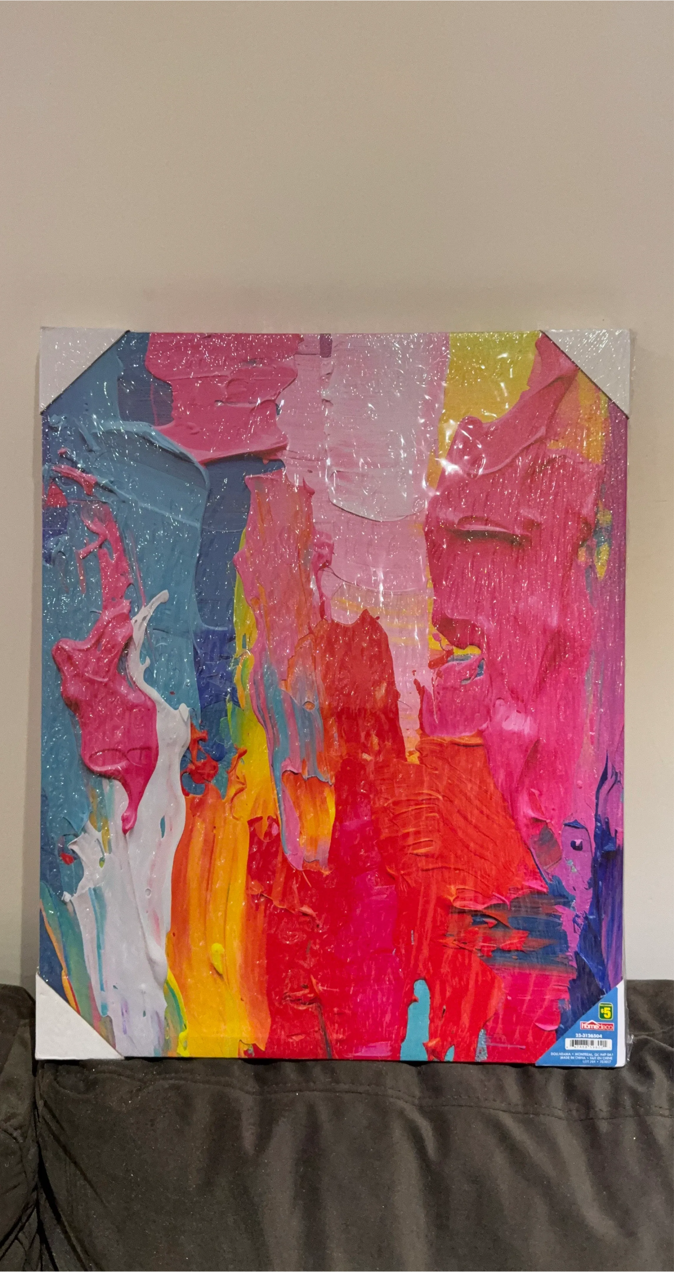 Brand new abstract wall art from Home Deco, still in its original packaging! This piece features vibrant colours and a unique texture, making it a great addition to any room. The original price on the packaging is $5