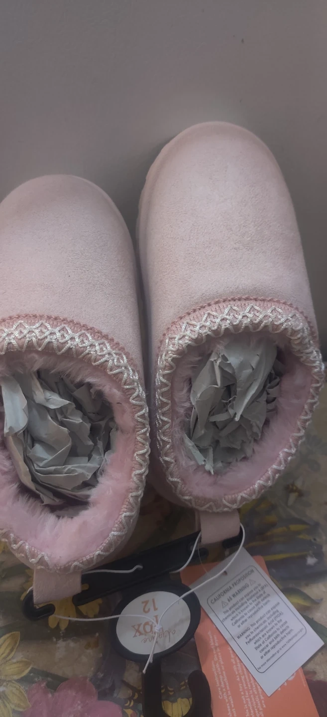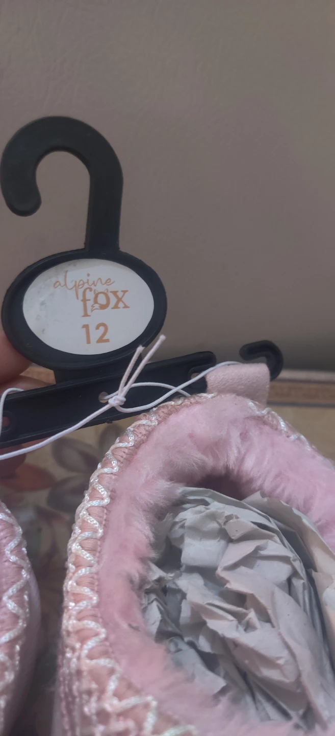 Selling a pair of Alpine Fox slippers in a lovely light pink! They're a size 12 kids and brand new.I don't reserve items for people I've never dealt with who only says hello I'm interested.I would need a pick time also.If interested you would have a week to pickup