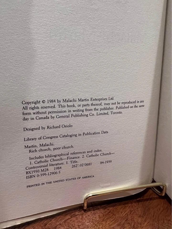 Rich Church, Poor Church by Malachi Martin - 1984