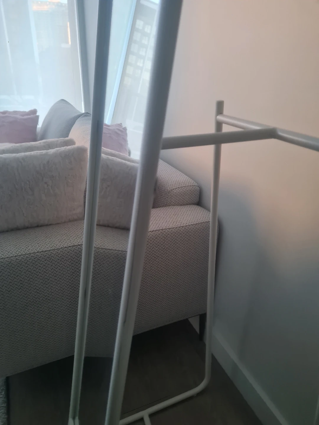 Selling an IKEA Knapper standing mirror with a built-in clothes rack. It's in great condition and perfect for adding a touch of style and functionality to any room. The mirror provides a full-length reflection, while the rack offers convenient storage for clothes and accessories