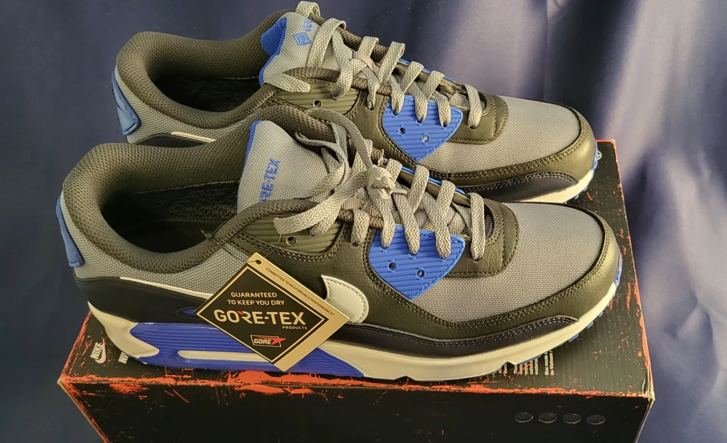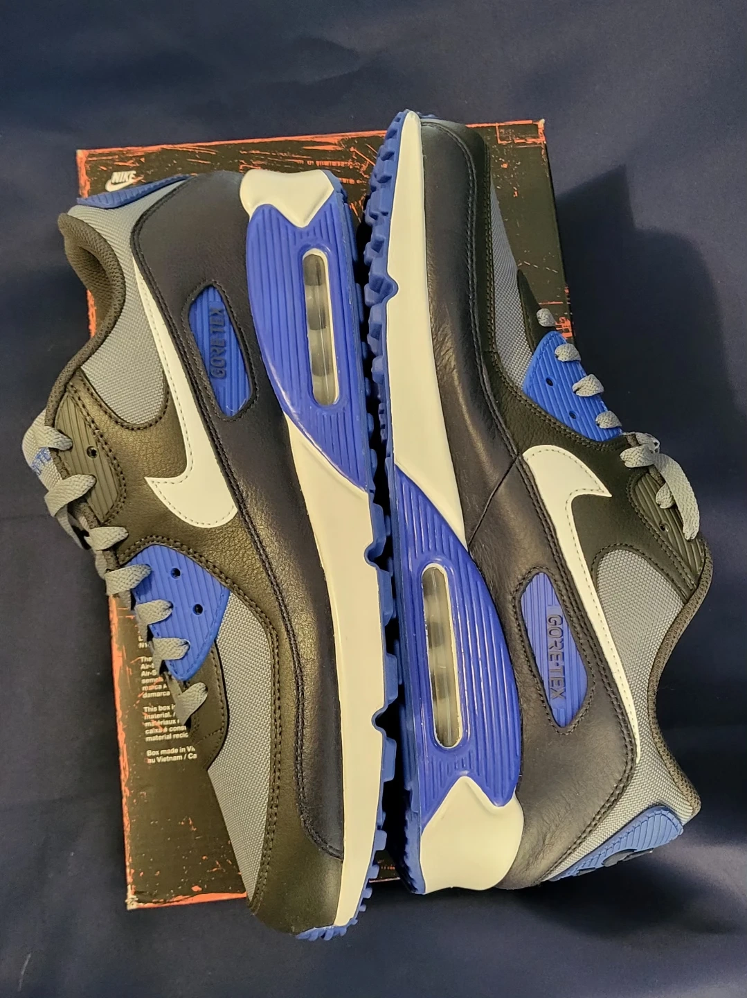Selling a pair of Nike Air Max 90 Gore-Tex sneakers! These shoes are designed to keep your feet dry and comfortable in wet conditions. They come with the original box