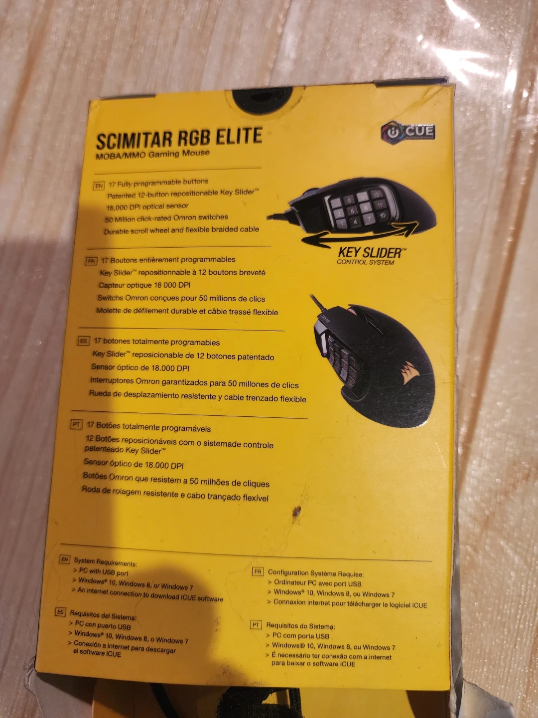 Selling a Corsair Scimitar RGB Elite gaming mouse, perfect for MOBA/MMO games! It comes with fully programmable buttons and a patented Key Slider control system. The mouse has a 16,000 DPI optical sensor and durable Omron switches rated for 50 million clicks. It also features a durable scroll wheel and a flexible braided cable. Box included!