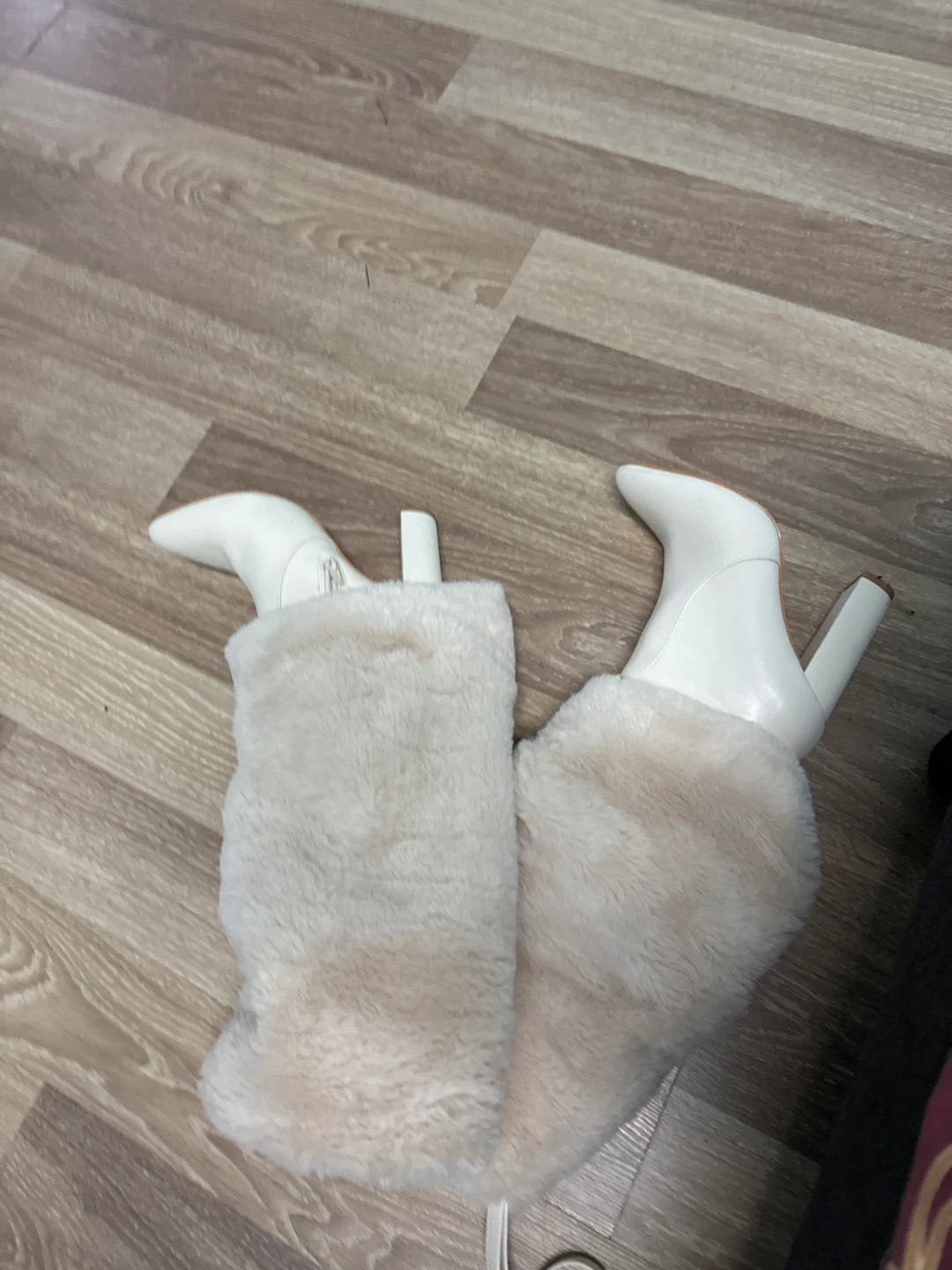 White Heeled Boots with Faux Fur