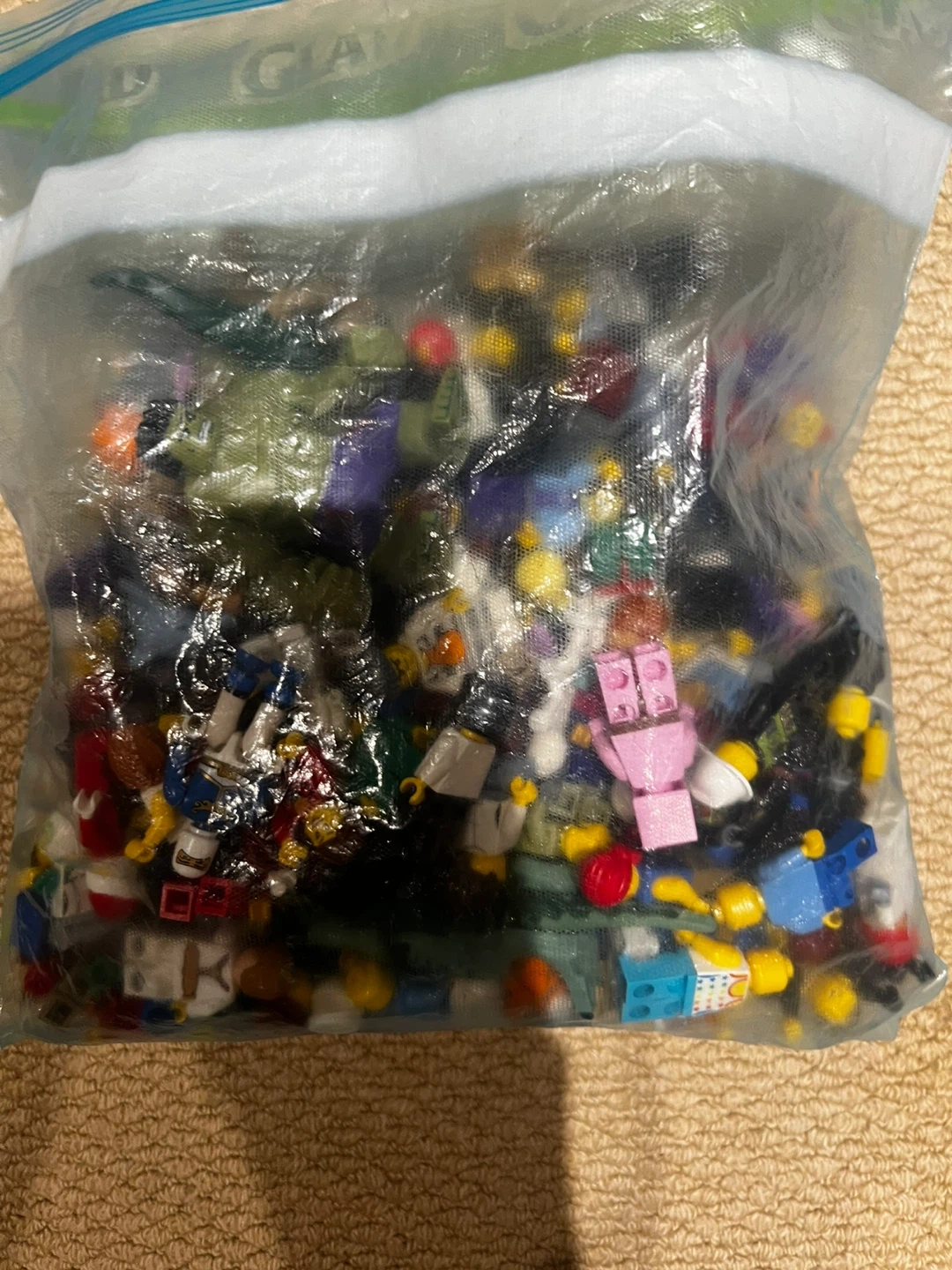 I'm selling a bag full of LEGO minifigure parts! There's a variety of heads, torsos, legs, and accessories. Great for building your own custom minifigures or replacing lost parts. Perfect for LEGO enthusiasts!