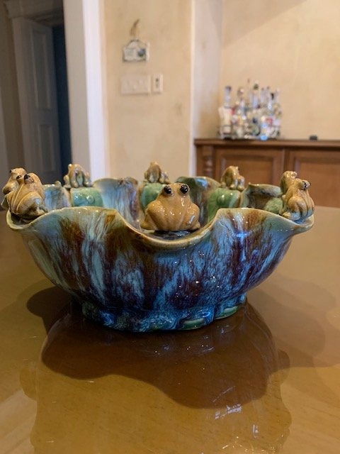 CHECK OUT MY LISTINGS FOR SMALLER MAJOLICA FROG BOWL - PLANTER