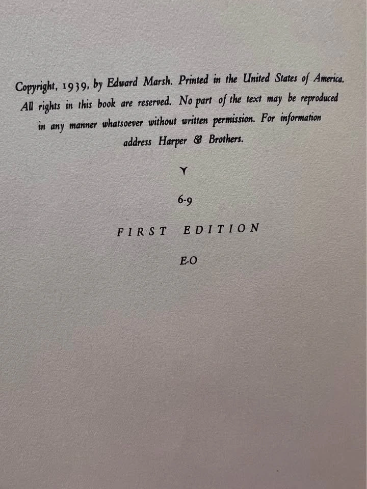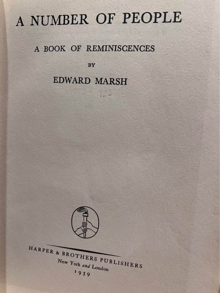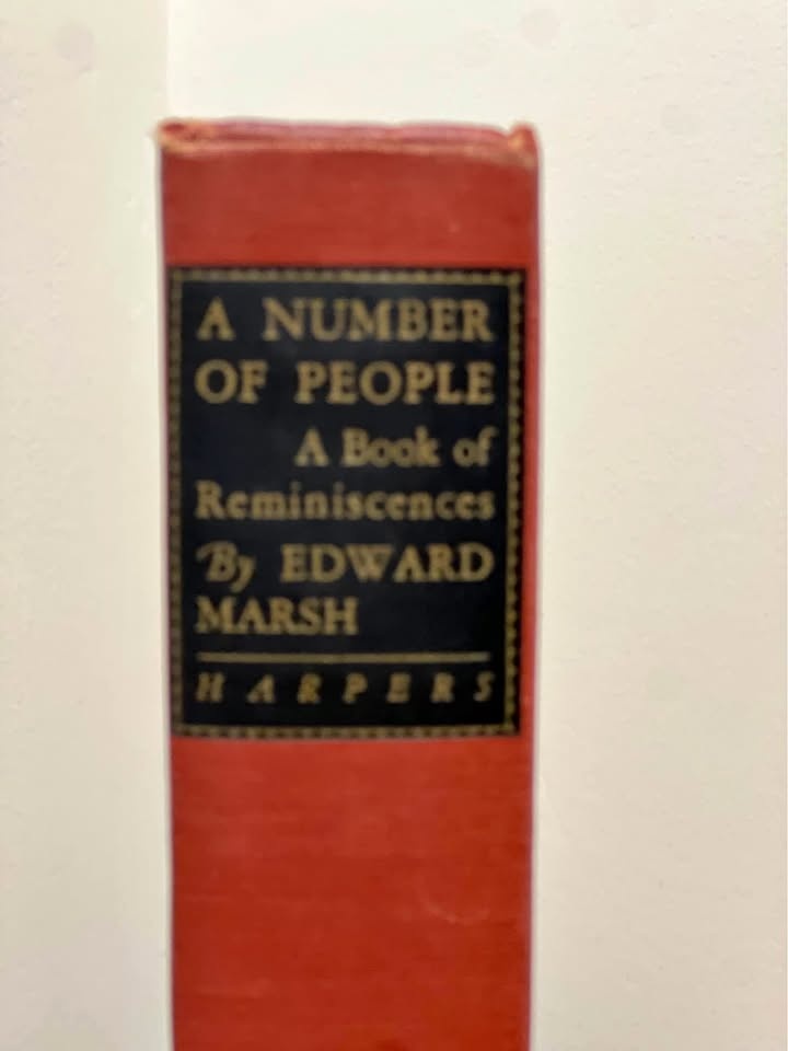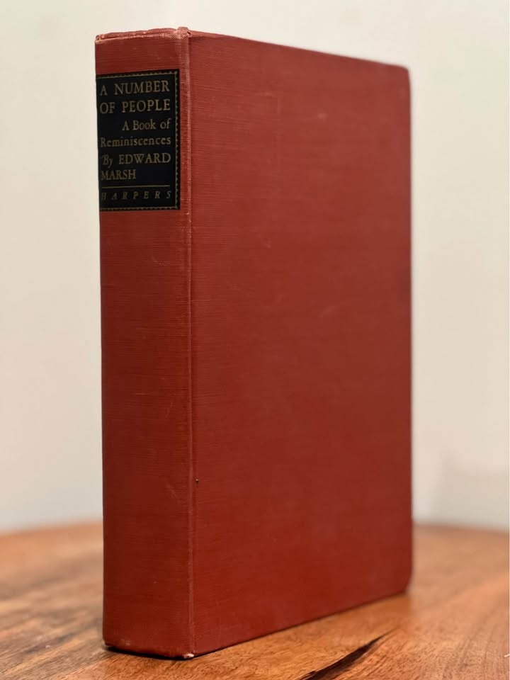 This is a first edition of the book A Number of People: A Book of Reminiscences by Edward Marsh, published in 1939. Author: Sir Edward Marsh K.C.V.O., who was Winston Churchill's longest-standing private secretary before World War II.