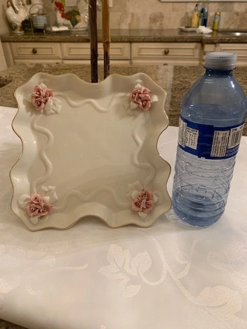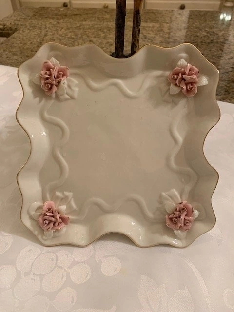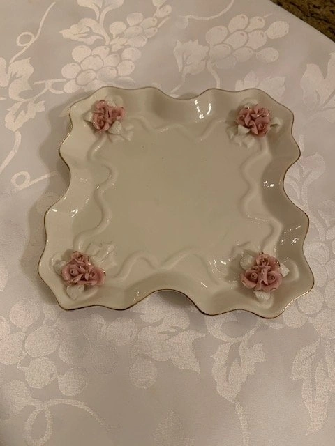 Delicate Pink Raised Miniature Roses Scalloped Wavy Edge - 10K Gold Trim