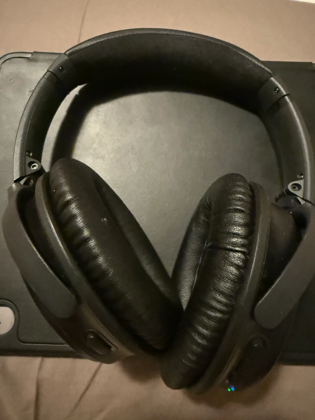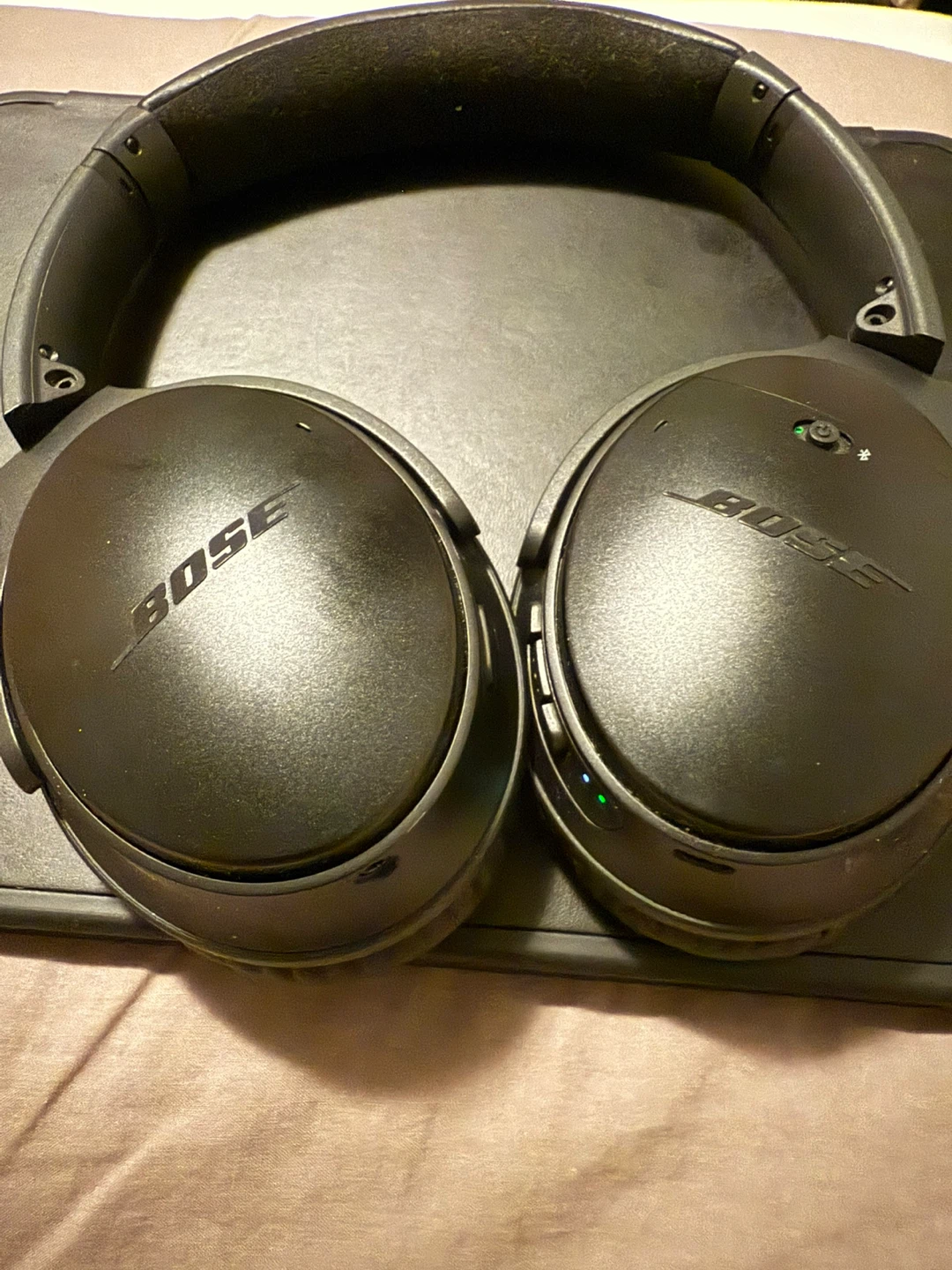 Selling a pair of Bose noise-cancelling headphones in black. They're in great shape and ready to provide some peace and quiet on your commute or at home. Perfect for focusing on work or just relaxing with your favourite tunes!