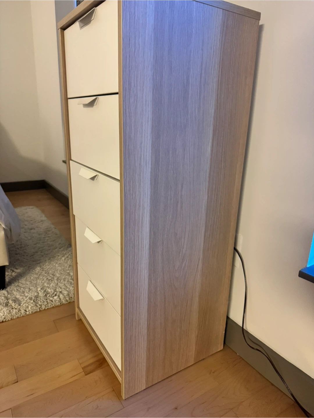 Selling a tall dresser with five drawers! It's perfect for adding extra storage space to any room. The neutral color and simple design make it easy to match with any decor. Great for organizing clothes, accessories, or other household items
