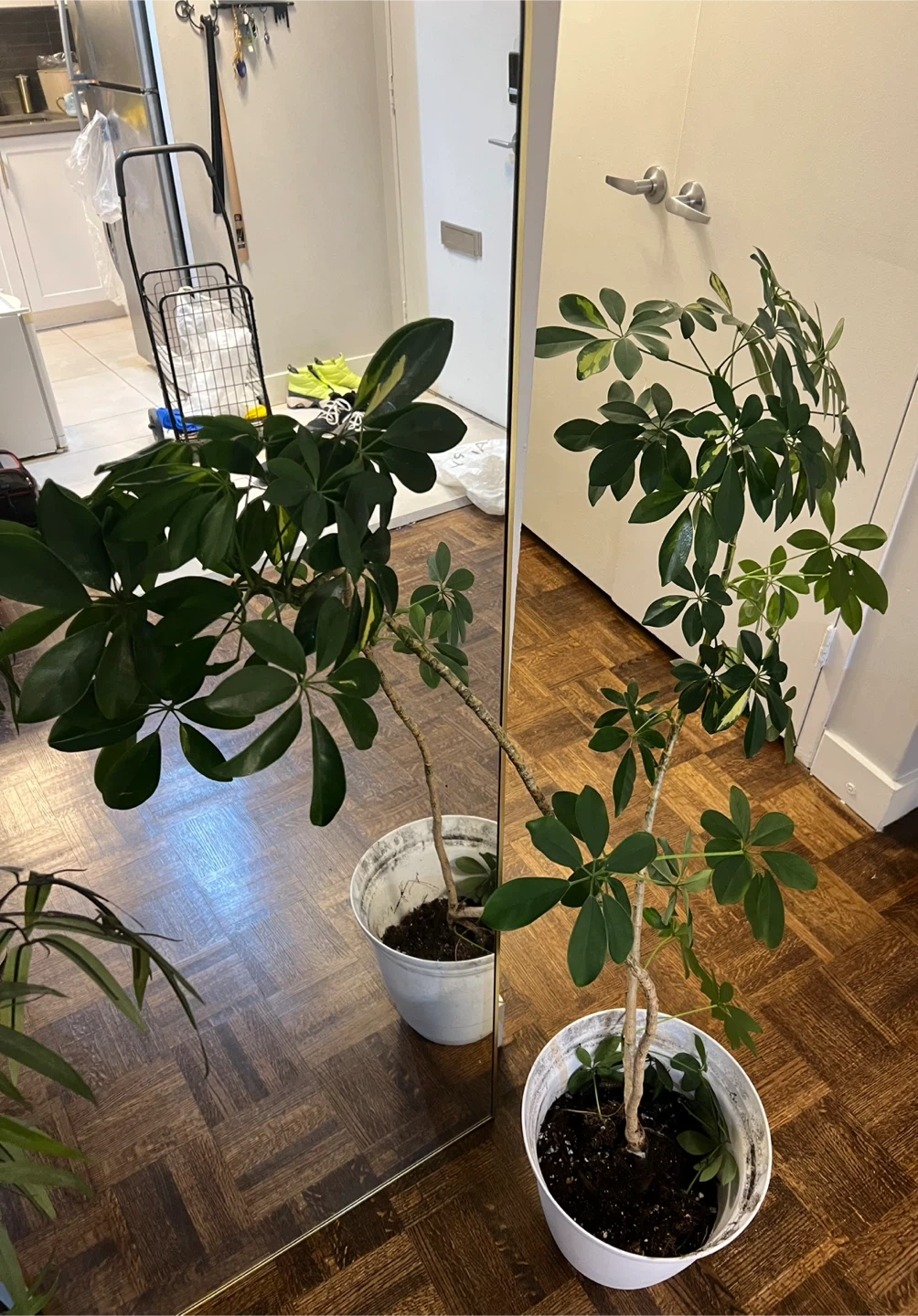 Selling a healthy umbrella plant! It comes in a simple white pot and is ready to brighten up any space in your home