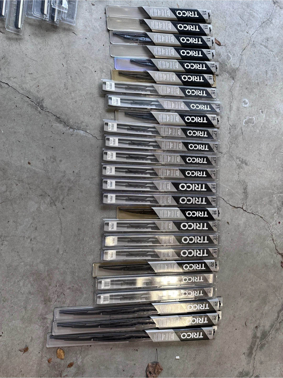 Got a bunch of TRICO windshield wiper blades in various sizes. Perfect for stocking up or finding the right fit for your vehicle! Sizes include 11, 13, 14, 15, 16, 17, 18, 19, 20, and 28.