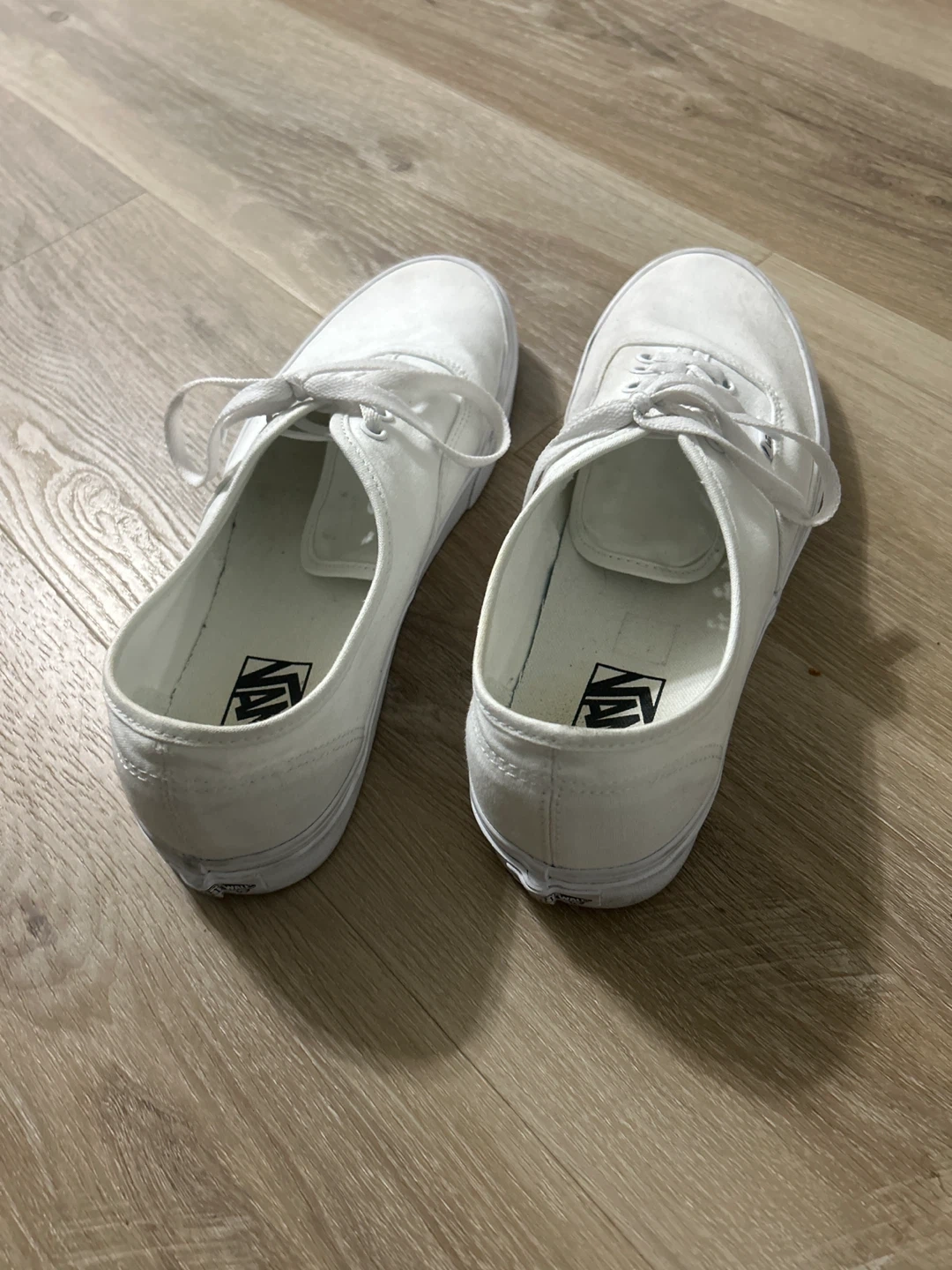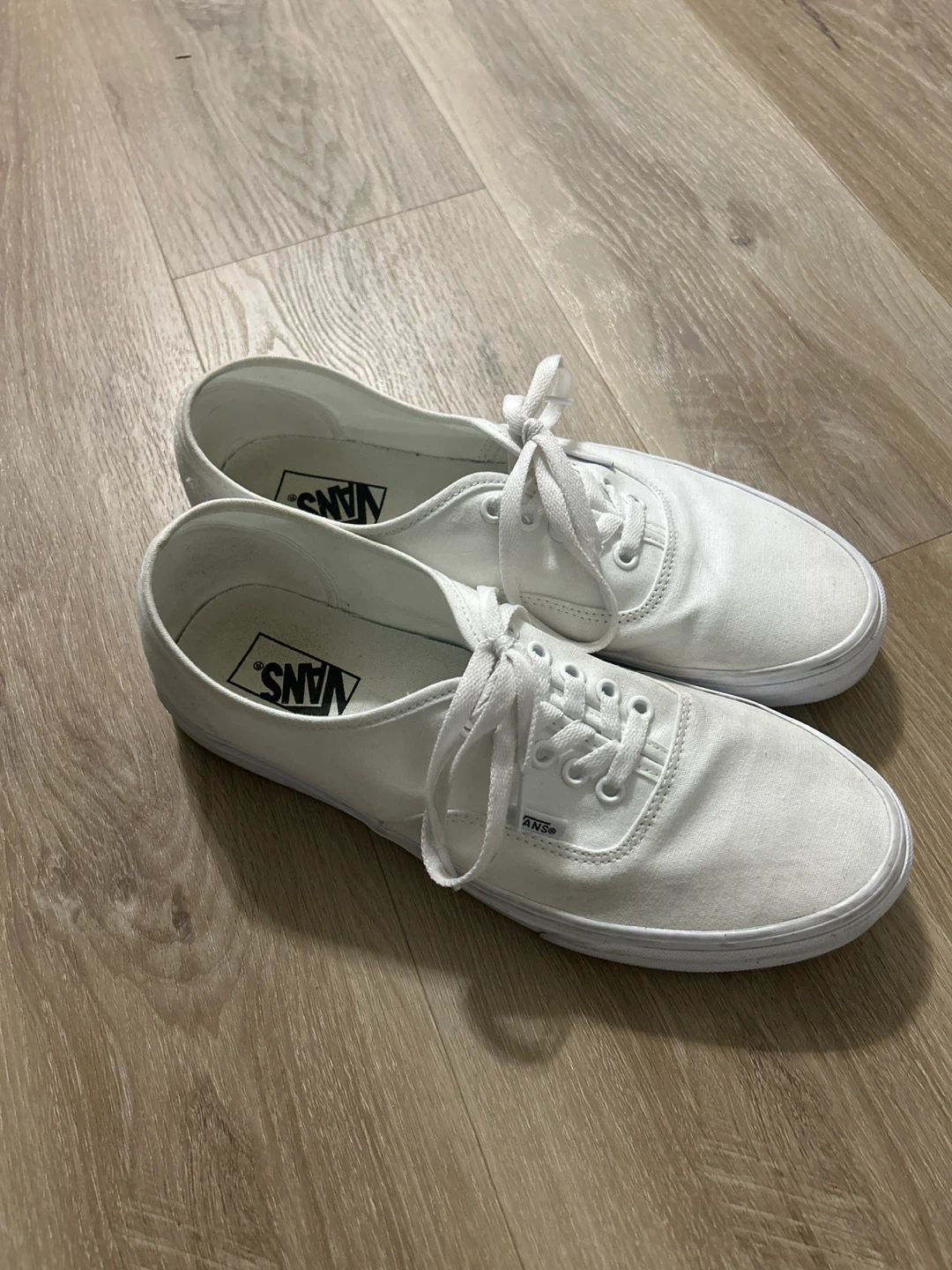 Selling a pair of Vans sneakers in white! These are in great shape and have only been worn three or four times. A simple, stylish shoe that goes with everything.